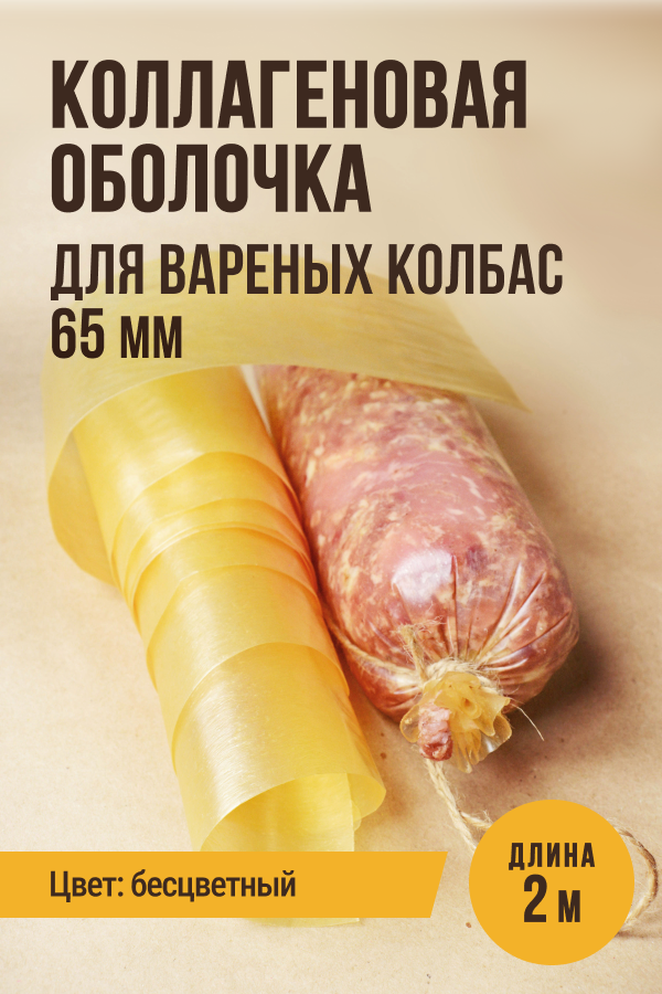 Коллагеновая прямая оболочка для Вареных колбас, калибр 65 мм, бесцветная, 2 метра