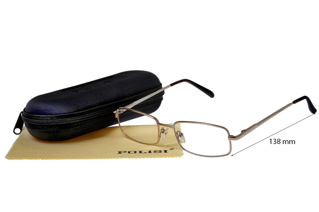 Тип товара: Компьютерные очки; Пол: Унисекс; Тип оправы: Ободковая; Форма оправы: Прямоугольная; Материал оправы: Металл; Проем ободка: 51; Ширина переносицы: 19; Длина заушника: 138; Основной цвет: Золотой