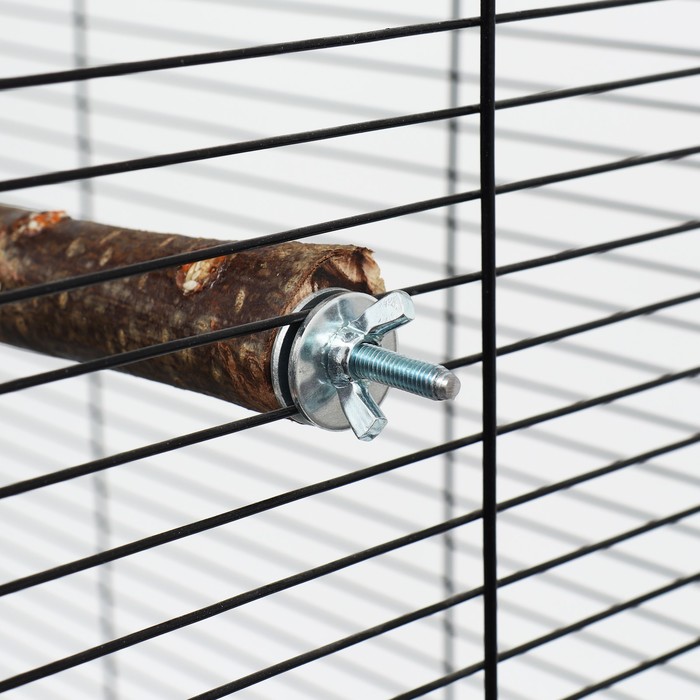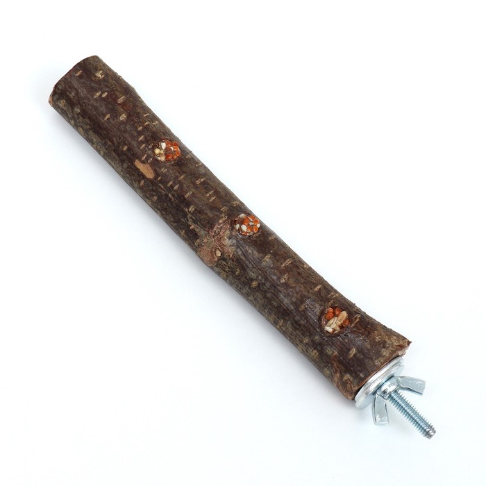Длина жердочки составляет 17 см, а диаметр — 1,8-2 см. Это оптимальный размер для большинства видов попугаев.