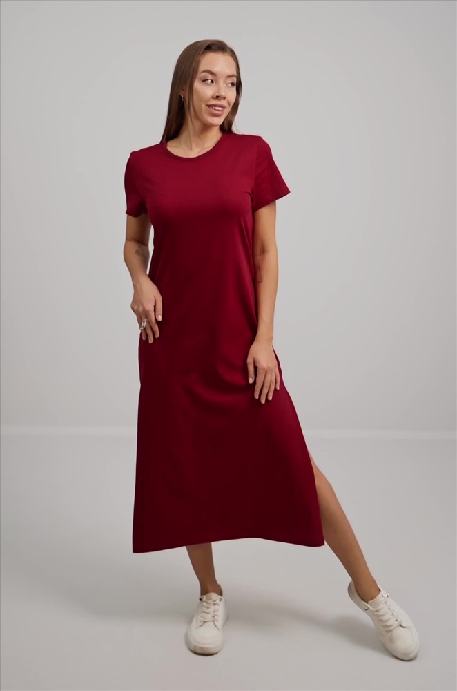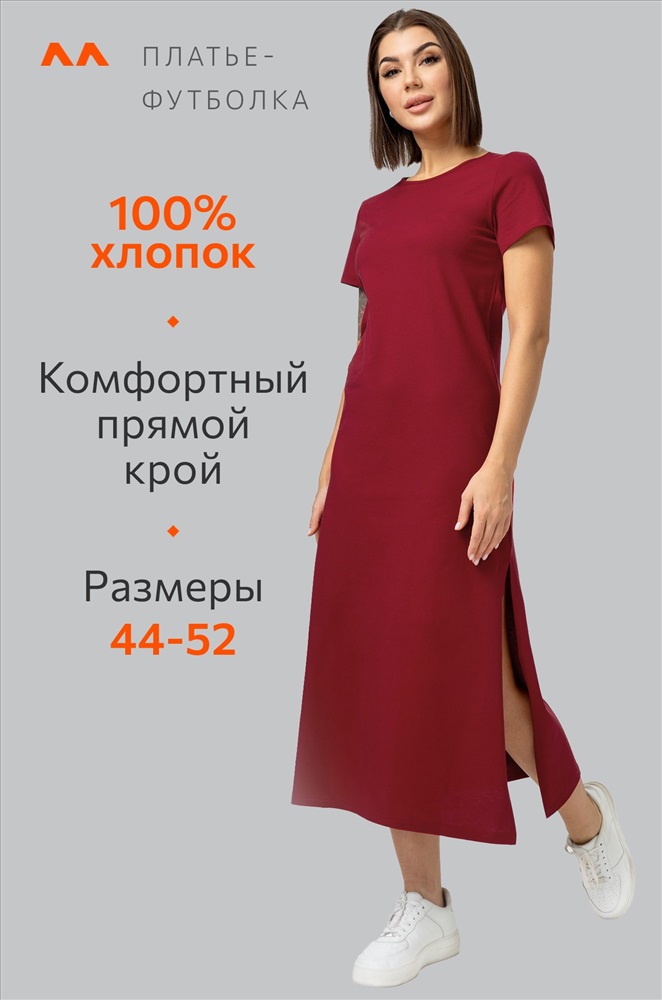 Однотонное бордовое платье – универсальная база на каждый день. Благодаря длине миди и удобным разрезам летнее платье дарит свободу движений. Темно-красное платье станет стильным акцентом. Трикотажное платье оттенка бургунди подходит для прогулок летом.