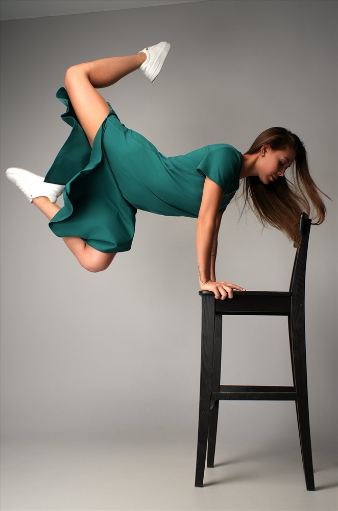 Модель Анфиса, ее рост 170 см, параметры 88-67-97 см. На ней размер 44.