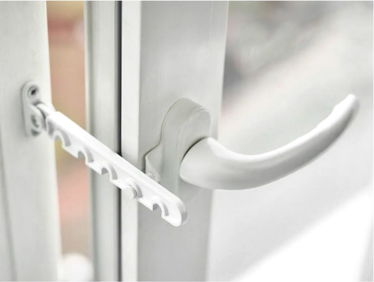 Надежный металлический ограничитель открывания окна. Цвет: белый