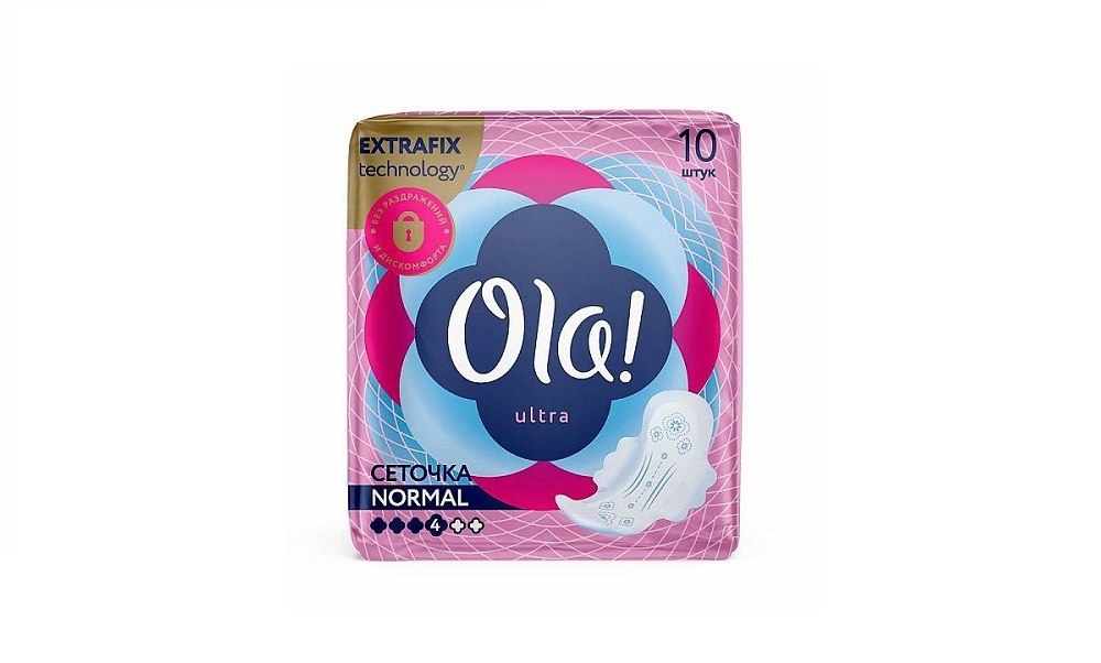 OLA! ULTRA NORMAL ПРОКЛАДКИ УЛЬТРАТОНКИЕ ШЕЛКОВИСТАЯ ПОВЕРХНОСТЬ Ультратонкие прокладки для нормальных выделений. Шелковистая поверхность эффективно защищает, создавая новый уровень тактильного комфорта; Гель "запирает" жидкость внутри прокладки, защищая от протекания;x Гофрированные крылышки плотно прилегают к белью и обеспечивают его защиту; Распределительные канавки перенаправляют жидкость, распределяя ее внутри контуров; Защитные контуры показывают, когда необходимо менять прокладку. В гель превращается суперабсорбент при попадании в него жидкости.