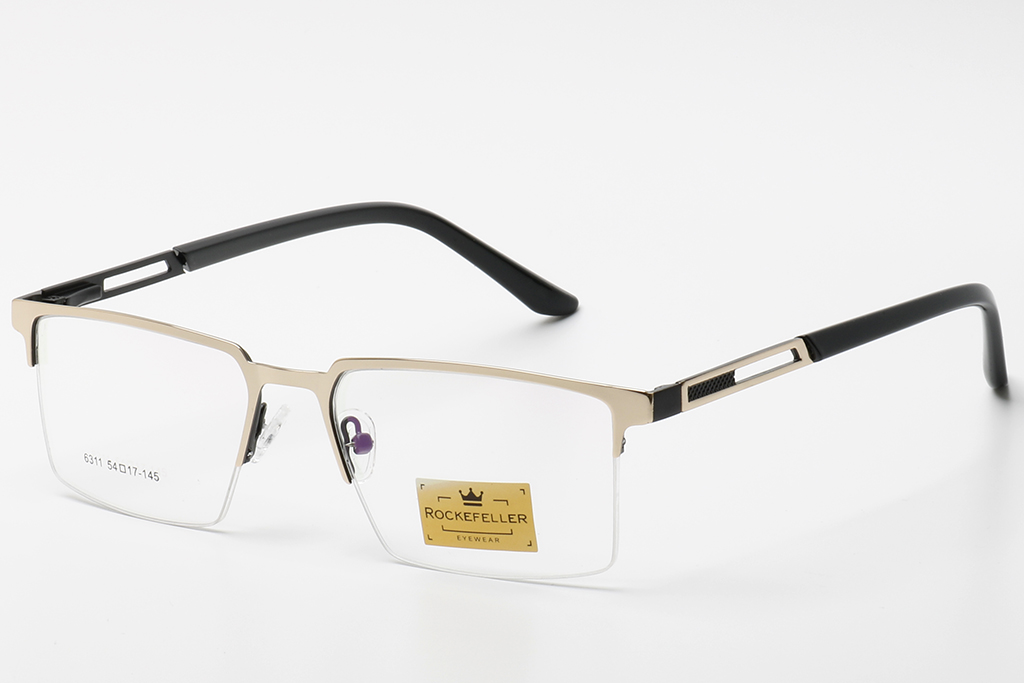 Тип товара: Оправа; Пол: Мужские; Тип оправы: Полуободковая; Форма оправы: Прямоугольная; Материал оправы: Металл; Проем ободка: 54; Ширина переносицы: 17; Длина заушника: 145; Страна производства: Китай; Основной цвет: Золотой
