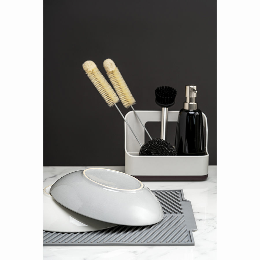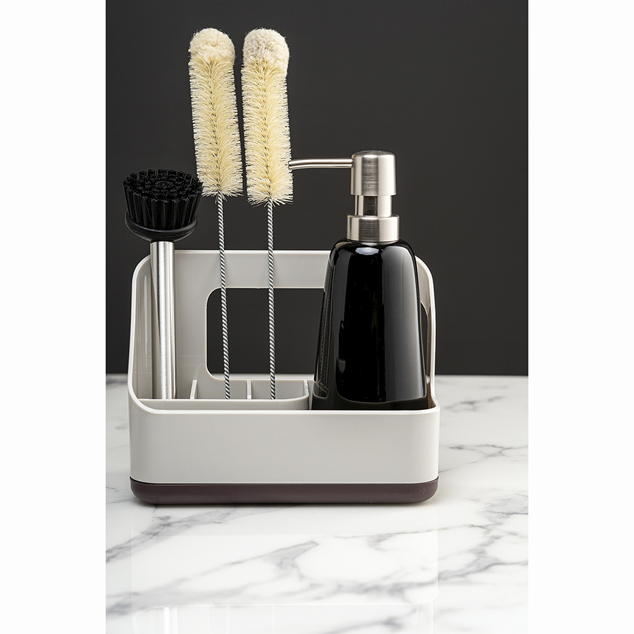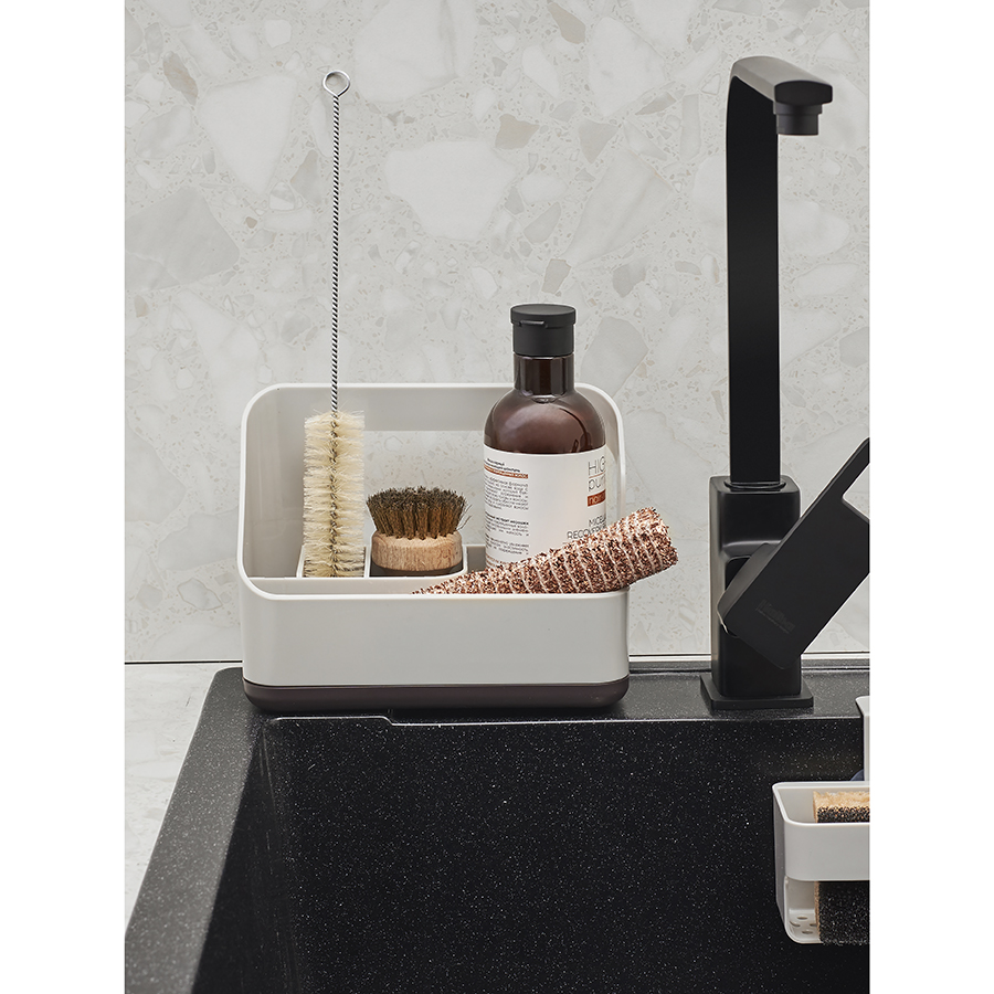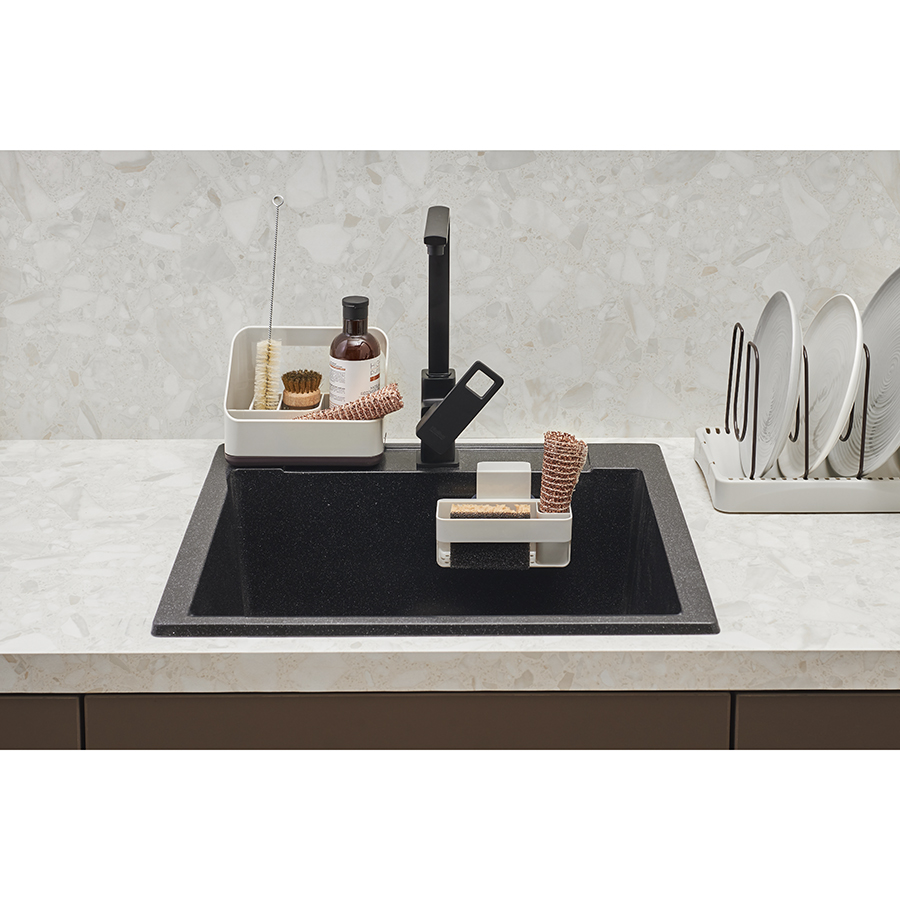 Органайзер Ronja позволит удобно разместить на раковине все необходимые аксессуары для очистки поверхностей и мытья посуды – губку, щетку, флакон с жидким средством, целлюлозную салфетку и прочее.
