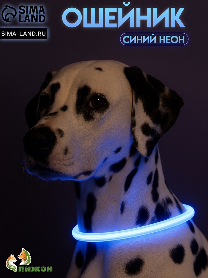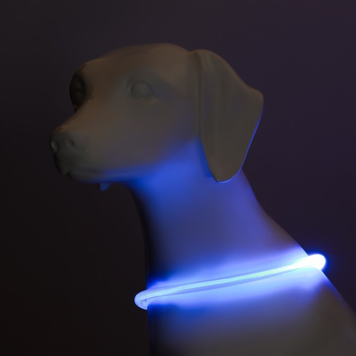 Ошейник - кольцо с подсветкой, зарядка от USB, до 70 см, 3 режима свечения, голубой