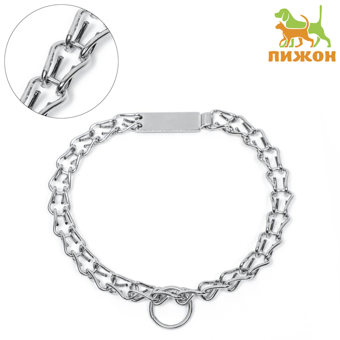 Ошейник - удавка с табличкой под гравировку, плетёный, 40 см, толщина проволоки 2 мм