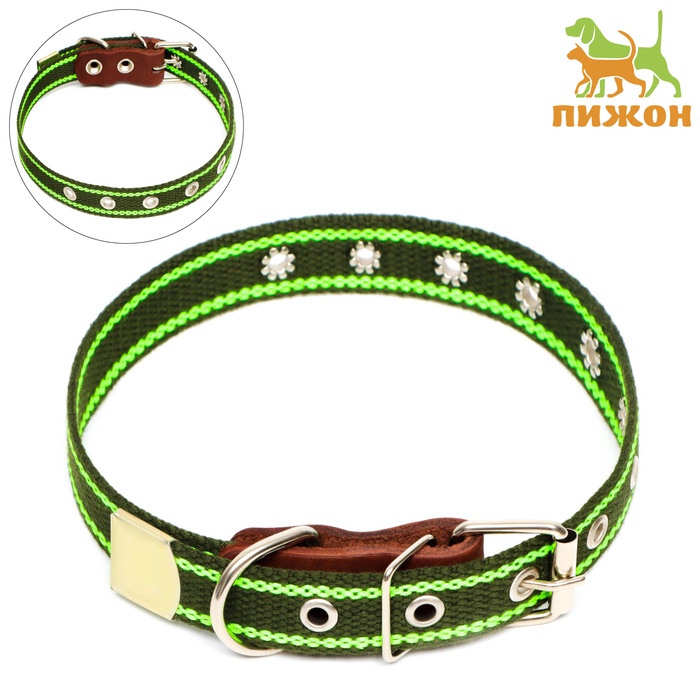 Производитель: Пижон; Габариты: 19 x 3 x 3; Страна: Россия; В боксе: 50 шт; Состав: Металл, брезент; Материалы: металл, брезент; Фасовка: по 1 шт; Индивидуальная упаковка: Без упаковки; Сертификат: Не подлежит сертификации; Цвет: Зелёный; Длина, см: 57; Ширина, см: 2,5; Вид застёжки: Пряжка; Рисунок: Нет; Материал: Брезент; Обхват шеи, см: 25 - 45; Вид ошейника: Повседневный