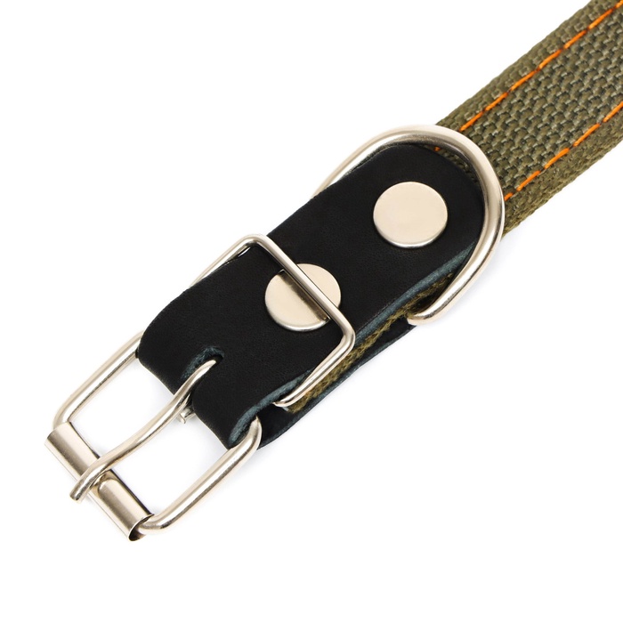 Ошейник полностью изготовлен из качественных материалов, таких как хлопок и полиэстер. Ошейник для собаки из брезента имеет в составе хлопок и полиэстер в соотношении 50% - 50%, что обеспечивает ошейнику высокую прочностью и долговечность.