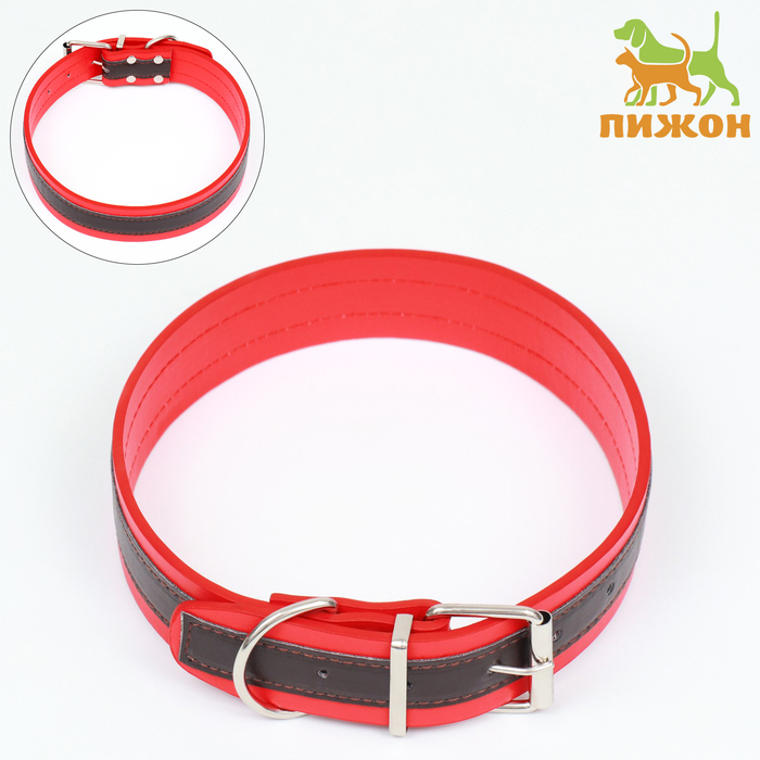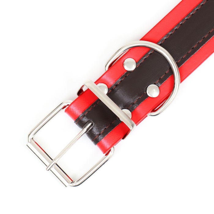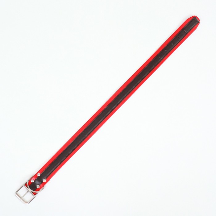 Ошейник двухслойный 66 х 3,5 см,ОШ 50-60, коричнево-красный