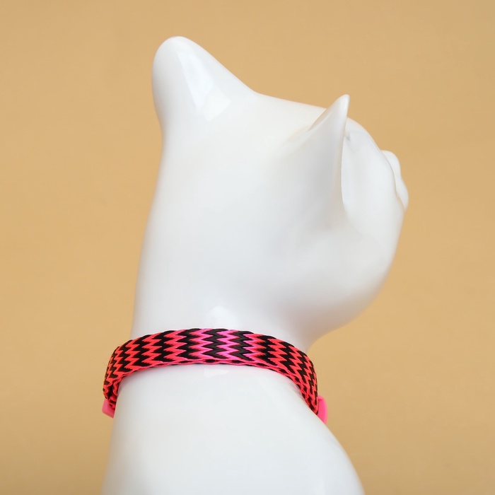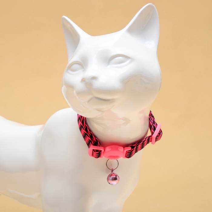 Ошейник кошачий "Волна", с бубенчиком, 30 х 1 см, полиэстер, розовый – это стильный и функциональный аксессуар, который не только добавит яркий акцент в образ вашего пушистого друга, но и обеспечит его безопасность. Этот ошейник идеально подходит для домашних кошек, стремящихся исследовать окружающий мир.