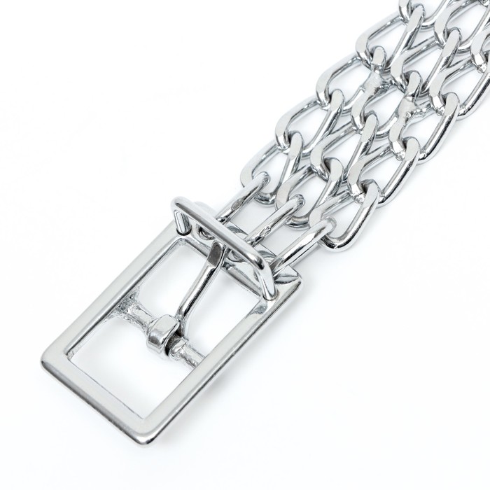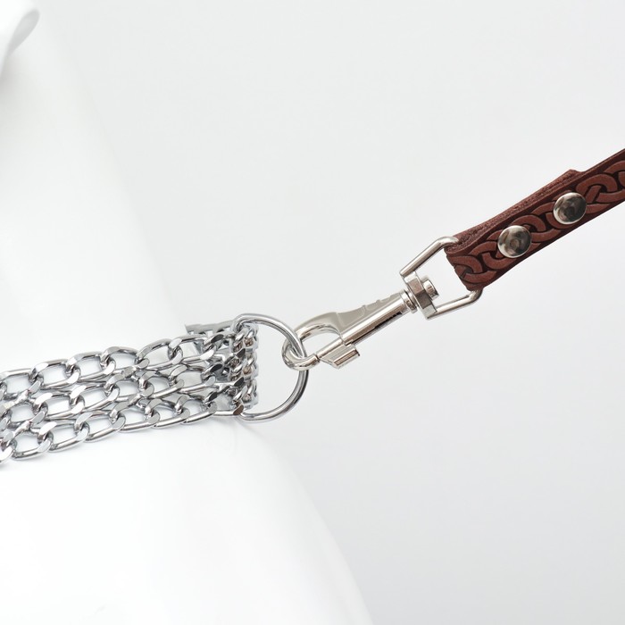 * Прочность и долговечность: металлическая плетёнка выдерживает значительные нагрузки, что делает ошейник идеальным для активных собак средних и крупных пород.