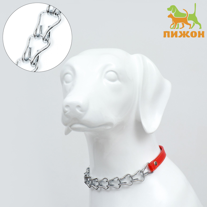 Ошейник металлический с вставкой из экокожи, 60 см х 3 мм