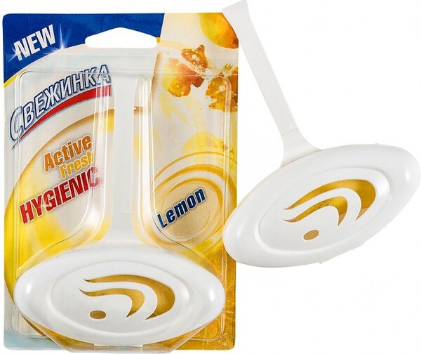 Бренд: СВЕЖИНКА; Индивидуальная упаковка: Блистер с подвесом; Серия: -; Материал: См. на упаковке; ШтрихКод: 4607023650678; Страна происхождения: Россия; Набор: Нет; Вид: Блок гигиенический подвисной; Вес (гр): 30; Отдушка: Лимон
