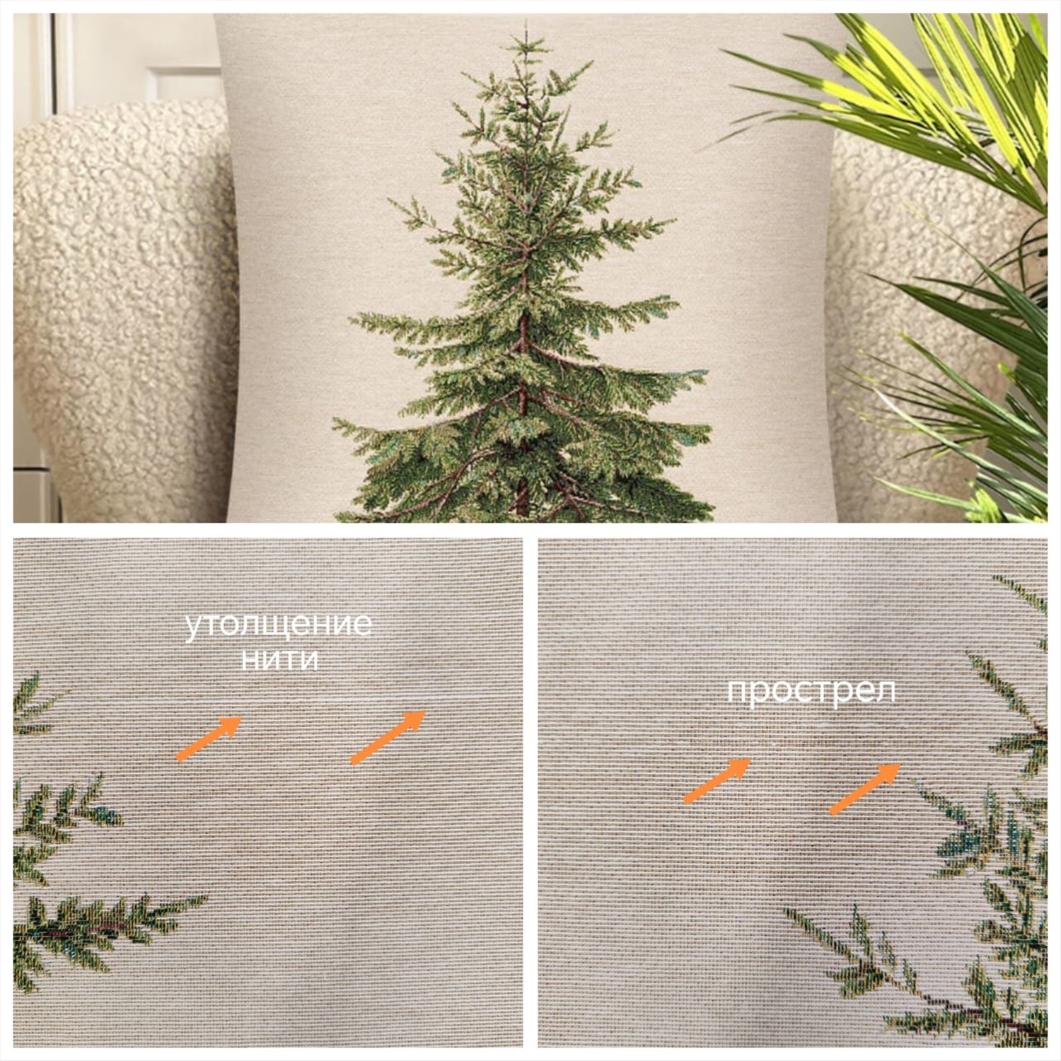 Ткань для наших изделий мы ткем на лучших ткацких фабриках Испании, высокий уровень качества которых подтвержден сертификатом качества OEKO-TEX Standard 100 и многолетней безупречной работой на Европейском рынке. Используется несколько видов переплетений. Затем специалисты нашего швейного производства бережно отшивают гобелен, превращая его в готовые изделия, которые уже более десяти лет радуют наших покупателей. Рисунок создается переплетением нитей различных цветов и фактуры. Состав ткани: хлопок ( дающий фактуру и приятную тактильность ) и синтетические нити ( придающие износостойкость ). Плотность гобелена 410 г на кв.метр.