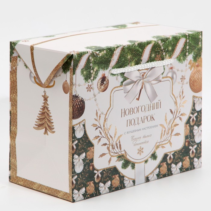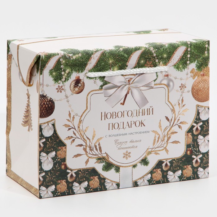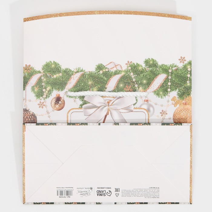 Производитель: Дарите Счастье; Габариты: 18 x 23 x 0,3; Страна: Китай; В боксе: 225 шт; Состав: Картон; Материалы: картон; Фасовка: по 1 шт; Индивидуальная упаковка: Пакет; Сертификат: ЕАС; Набор: Нет; Цвет: Зелёный, Золотистый, Белый; Для кого: Унисекс; Форма: Прямоугольная; Плотность, г/м²: 210; Длина, см: 23; Ширина, см: 11; Высота, см: 18; Допустимый вес вложения, г: 1500; Тематика: Шары, Новогодняя; Рисунок: Да; Символ года: Нет; Тематика праздника: Новый год; Материал: Бумага; Отделка пакета: Без отделки; Расширение: Без складки; Вид ручки: Ручка-шнур; Форма пакета: Горизонтальный; Особенности: С широким дном; Вид: Коробки-пакеты; Размер: Средний (18-24 см); Окошко: Нет; Крышка-дно: Нет
