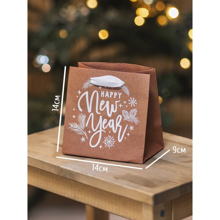 Пакет подарочный новогодний крафтовый квадратный «Новогодний подарок», 14 х 14 х 9 см