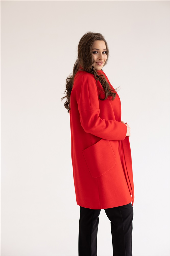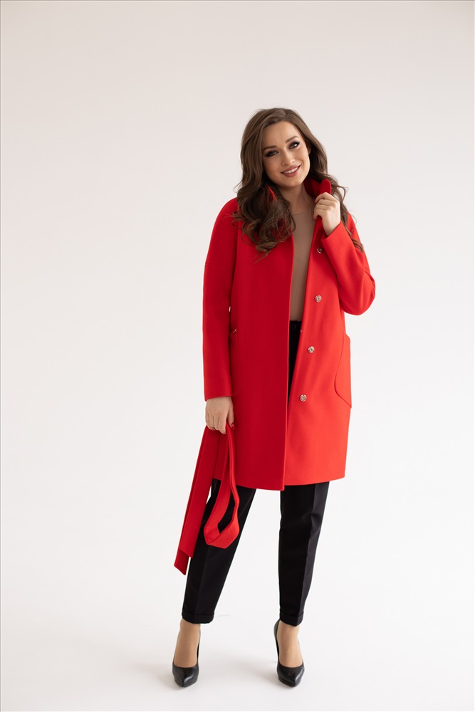 Модель: 19101/пояс; Материал: кашемир; Цвет: красный Описание: Пальто женское демисезонное. Силуэт прямой. Вид ткани пальтовая. Изделие однобортное с застежкой на 5 пришивных кнопок. Воротник стойка. Пояс есть. Длина изделия по спинке 91 см. Длина плеча 30,2 см. Длина рукава 41,0 см. Состав ткани: 60% шесть, 40% полиэстер.