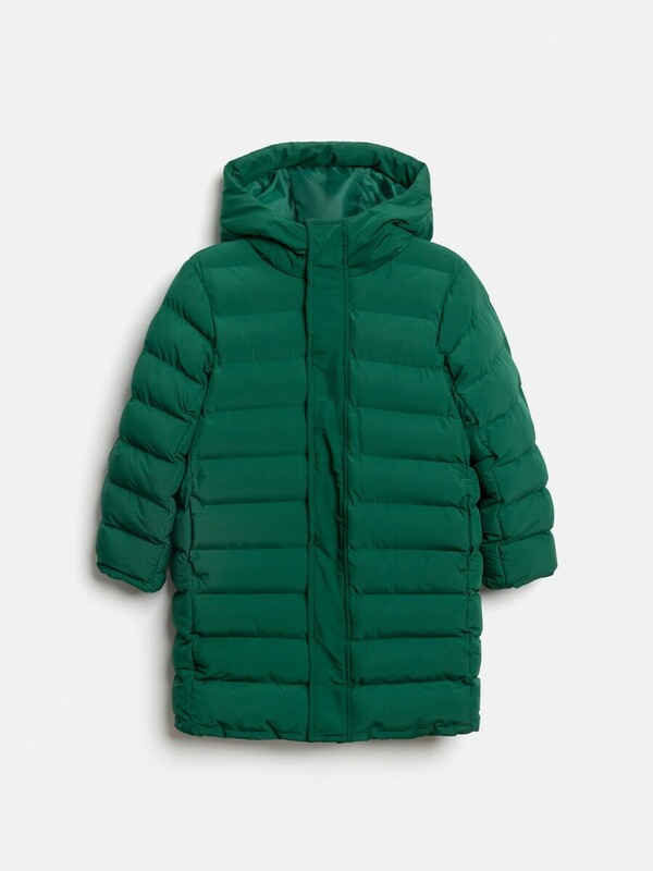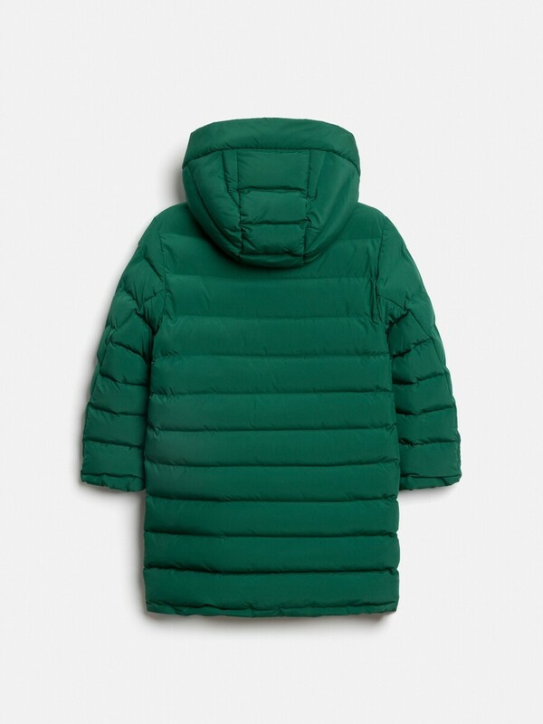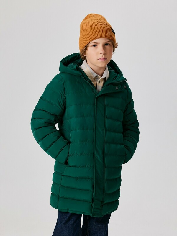 Детское утеплённое пальто для мальчика выполнено из ткани с водоотталкивающей пропиткой, которой не страшны мелкий дождь, туман и влажность. Удлиненная куртка с капюшоном утеплена синтепухом (вес 400 гр/м2), что делает ее подходящей для температуры от +5 до -15 градусов. Подкладка для тела и карманов выполнена из стандартной подкладочной ткани. Спереди расположена застёжка на молнию с защитой от защемления, дополненная внутренней и внешней ветрозащитными планками; внешняя планка застегивается на потайные кнопки. В боковых швах куртки расположены два кармана, добавляющие практичности. Несъёмный капюшон защитит ребенка от ветра и непогоды. Низ рукавов присобран на резинку для лучшего прилегания к запястьям и предотвращения продувания. Удлиненная модель отлично подойдет для холодного времени года. Теплая зеленая куртка для мальчика станет отличным вариантом на демисезон.