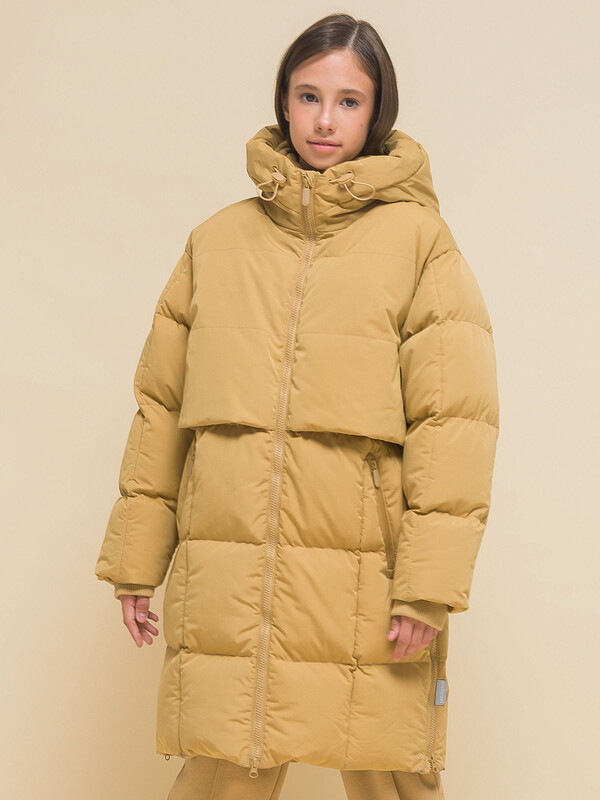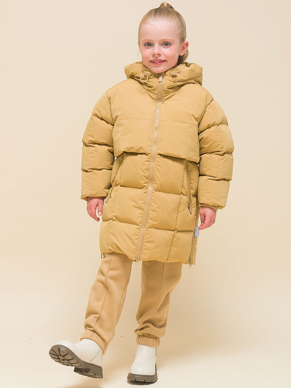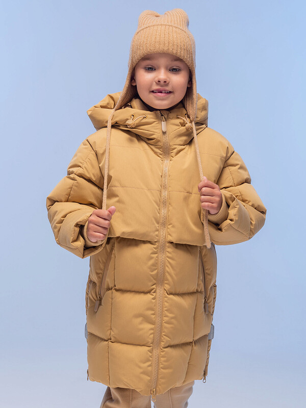 Состав: 68%полиэстер 32%нейлон+мембрана, подклад: 100%полиэстер, утеплитель: экопух 100%полиэстер Пальто зимнее для девочки из мембранной ткани. На внешнюю поверхность материала нанесена водоотталкивающая пропитка (DWR), она задерживает грязь и влагу снаружи — ребёнок не промокнет. Также есть дополнительная пропитка на внутренней стороне ткани. Куртка прямого силуэта оверсайз подходит для любого типа фигуры. Капюшон двухшовный, что обеспечивает анатомически правильную форму и комфортную посадку по голове. Капюшон не отстегивается, предусмотрена регулировка объема эластичными шнурами с пластиковыми стопперами. Внутренние манжеты рукавов из эластичной рибаны (ткань в рубчик) — дополнительная защита от ветра и холода. Ширина горловины позволяет надевать свитер с объемным воротником или объёмный шарф. Верхняя часть переда и спинки имитирует надетый поверх жилет, объём которого регулируется эластиком со стопперами — оригинально и стильно. Центральная застёжка на тракторную молнию с двумя пуллерами — удобно садиться. Тканевый стоппер защищает подбородок от зажима молнией. Фиксирующая строчка предохраняет планку от «заедания» в процессе застёгивания. Куртка-пальто тёплая — дополнительно, для защиты от ветра и холода, центральная молния закрыта ветрозащитной планкой на липучках (велькро). В боковых швах вставлены застёжки-молнии для возможности увеличения ширины по низу изделия. Пальто стёганое дополнено прорезными карманами на молнии — удобно пользоваться. Карманы с боковым входом закрываются на водонепроницаемую молнию со скрытыми звеньями — их содержимое не промокнет. Карманы внутри утеплены мягким флисом. В каждой куртке нейм-лейбл! Ребёнок не потеряется и не потеряет куртку! На спинке и в боковых швах расположены светоотражающие элементы — безопасность в тёмное время суток. Изделие неприхотливо в уходе. Пальто без принта. Куртка выполнена из полиэстера и нейлона (+мембраны) — она тёплая, не промокает, легко стирается, быстро сохнет, сохраняет отличную форму и цвет надолго. Подкладка из мягкого, тёплого и дышащего флиса (по стану, внутреннему воротнику и в капюшоне). В рукавах подкладка из полиэстера — благодаря этому ребенку легко надевать куртку, руки не путаются в рукавах. Пуховик выполнен в бежевом цвете. Его просто комбинировать с различными брюками, юбками, колготками. Размерная линейка: 3 (98); 4 (104); 5 (110); 6 (116); 7 (122); 8 (128); 9 (134); 10 (140); 11 (146). Пальто оверсайз идеально для маленьких девочек дошкольного и младшего школьного возраста, а также девочек-подростков. Рекомендуемый температурный режим: не ниже минус 30 градусов. Утеплитель: экопух. В рукавах дополнительный слой тонкого синтепона. Модель подходит для носки в детский сад, школу, для прогулок и отдыха. Зимнее пальто для девочки — замечательный подарок для дочери или внучки на День рождения или любой другой праздник. Комментарии к товару