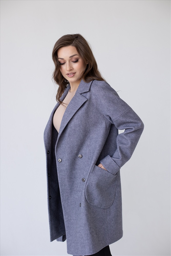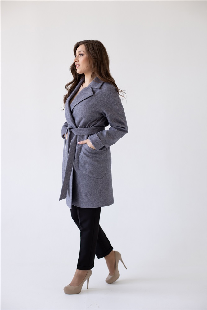Модель: 22400; Материал: рубчик; Цвет: серый/рубчик Описание: Пальто женское демисезонное. Силуэт прямой. Воротник английский. Заход бортов 16см. Застёжка на 4 пришивные кнопки. Рукав со спущенным плечом. Нарманы накладные. Пояс есть. Длина рукава 72 см. Длина изделия по спинке 93 см.