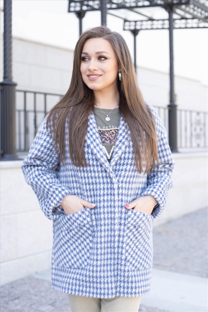 Модель: 22520; Материал: микроворса; Цвет: grey blue Описание: KANKAN LUX Пальто женское демисезонное. Пальто прямого силуэта, мягкая свободная форма.Оверсайз. Накладные карманы с отворотом. Рукав одношовный со спущенным плечом. Застежка на три пришивные кнопки. Длина рукава 73 см. Длина изделия по спинке 80 см.