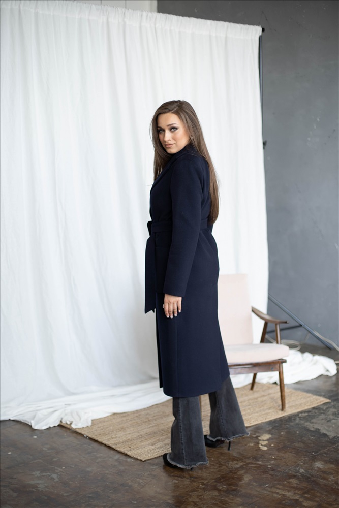 Модель: 22550; Материал: кашемир; Цвет: синий Описание: Пальто женское демисезонное. Сулуэт прямой. Воротник английский. Рукав втачной двухшовный. Карманы накладные. Пояс есть. Длина рукава 62 см. Длина изделия по спинке 120 см.