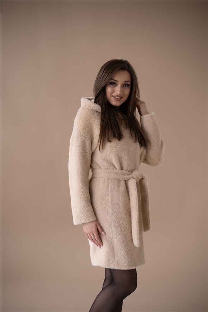 Модель: 23100; Материал: Искусственный мех; Цвет: беж/тедди Описание: Пальто женское демисезонное Силуэт прямой со спущенным плечом. Капюшон с дополнительной застежкой под горло. Карман в рельефном шве. Пояс есть. Длина изделия-95см Длина рукава от шва - 72см