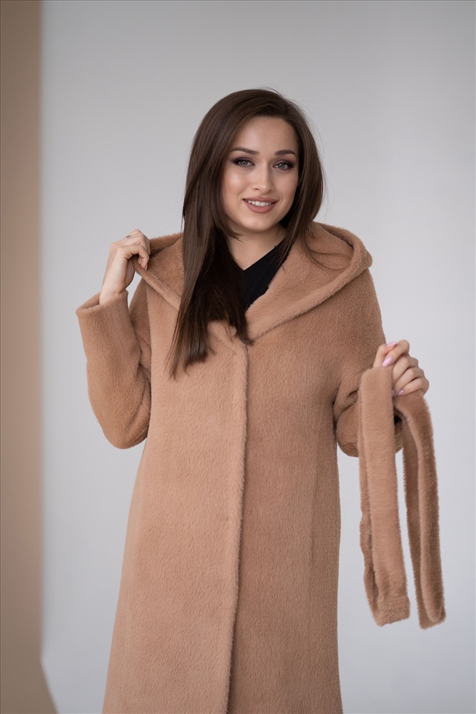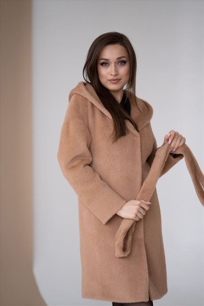 Модель: 23100; Материал: Искусственный мех; Цвет: кэмел/тедди Описание: Пальто женское демисезонное Силуэт прямой со спущенным плечом. Капюшон с дополнительной застежкой под горло. Карман в рельефном шве. Пояс есть. Длина изделия-95см Длина рукава от шва - 72см