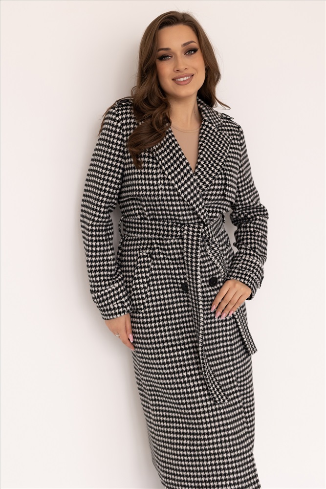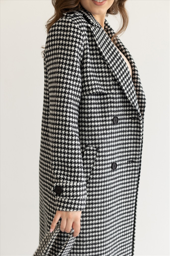 Прямой силуэт, слегка зауженное в талии,двубортное