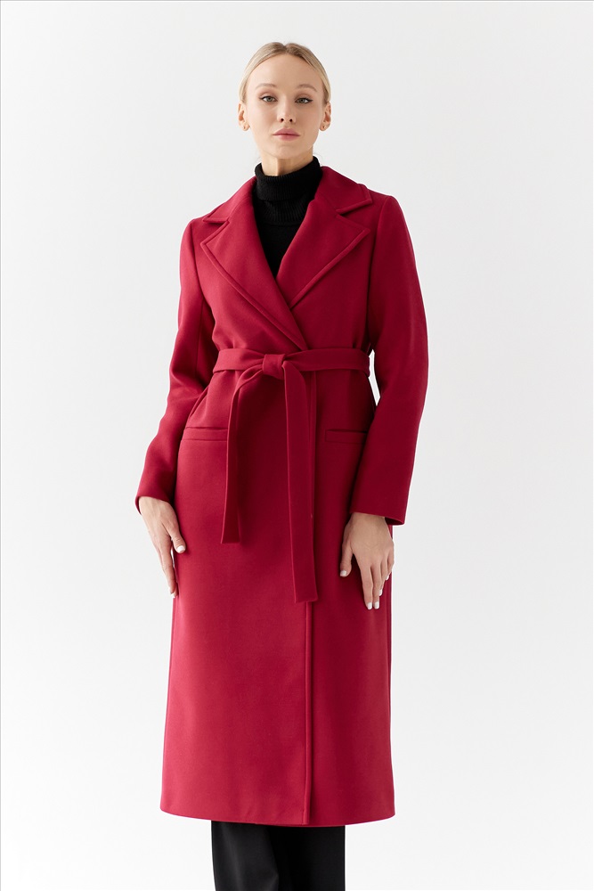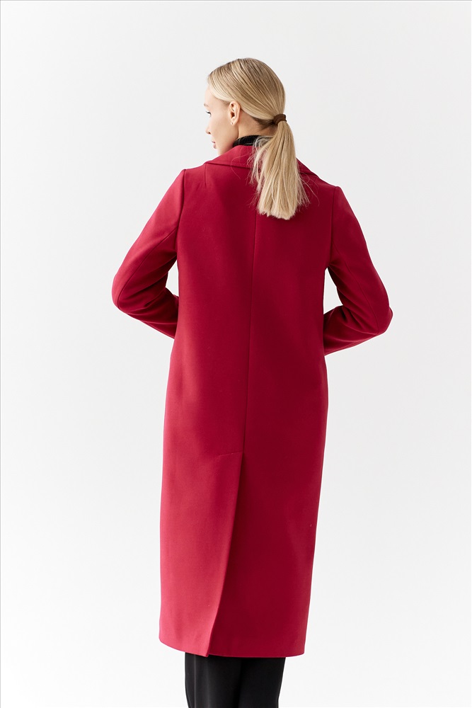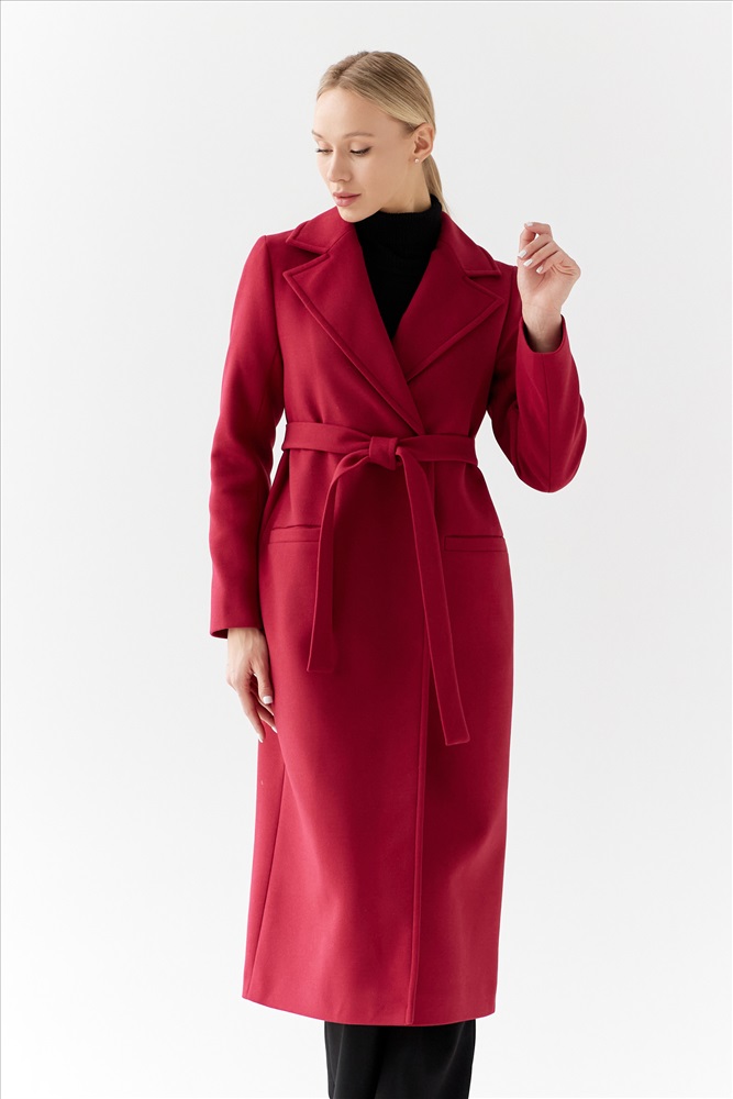 Модель: 24770; Материал: кашемир; Цвет: вино; Параметры модели: 86-62-92, 176; Размер на модели: 42 Описание: Пальто женское демисезонное. Силуэт прямой с втачным рукавом. Воротник английский. Рукав 2-шовный втачной. Застёжка на 4 пришивные кнопки. Длина рукава с плечом 70 см. Длина изделия по спинке 120 см.