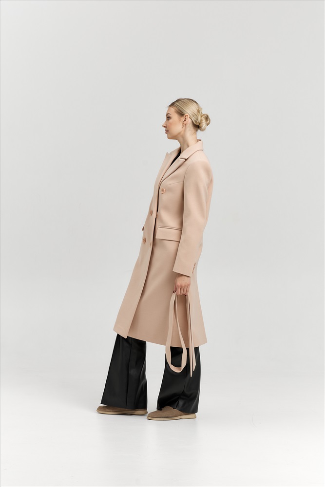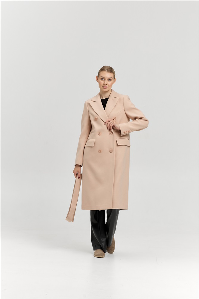 Модель: 25775; Материал: кашемир; Цвет: кремовый; Состав: 70% шерсть, 30% полиэстер; Размер на модели: 44