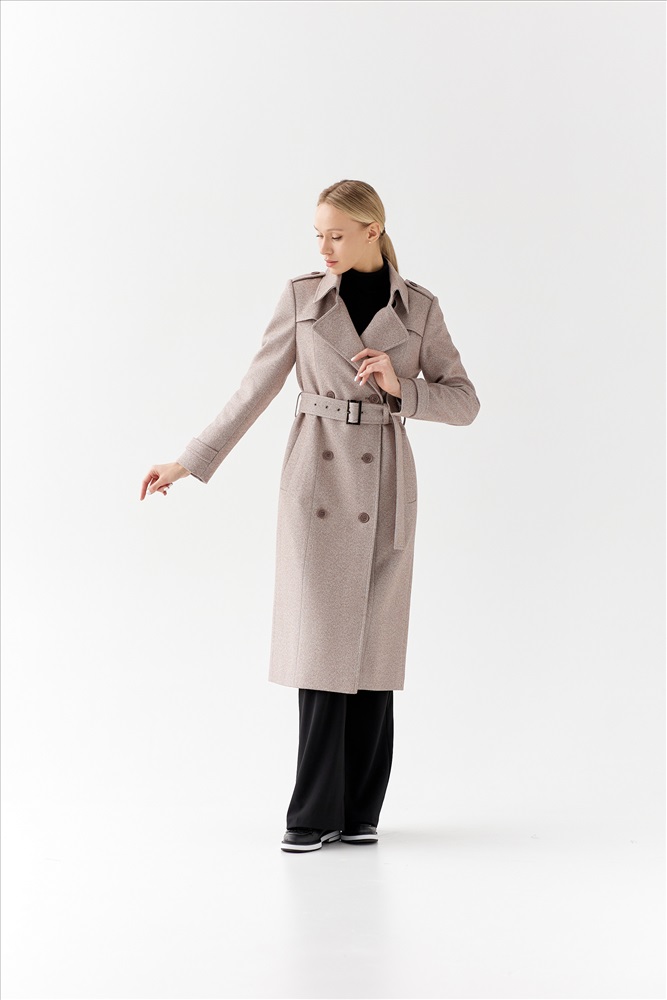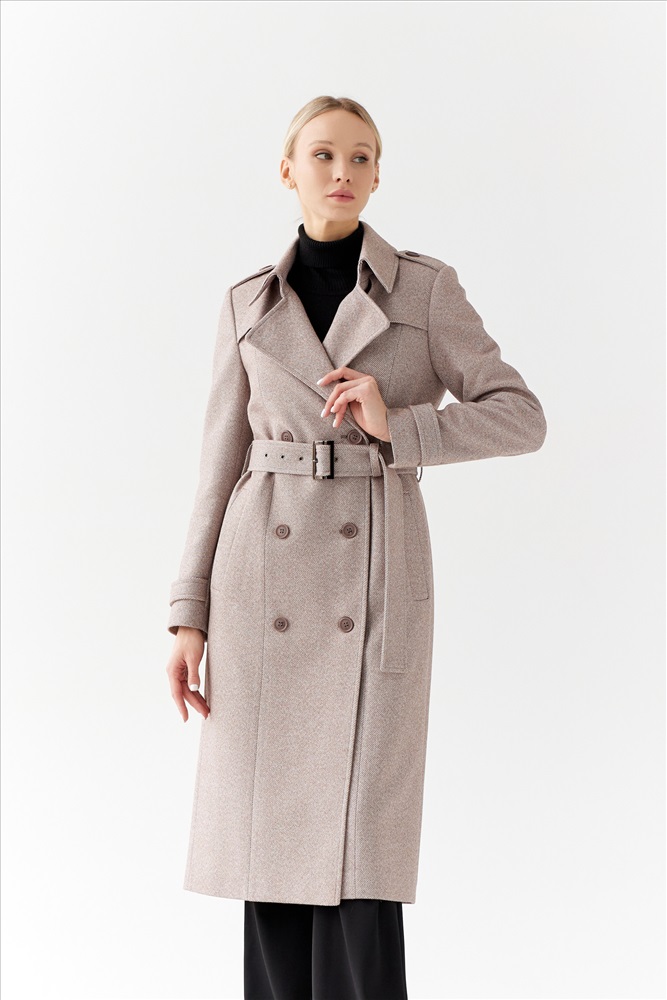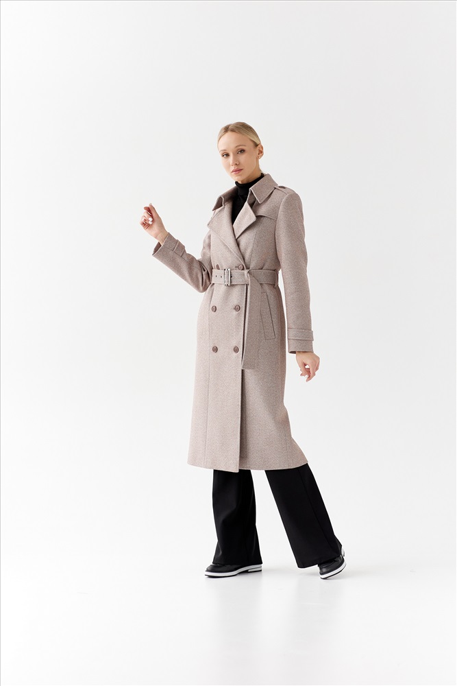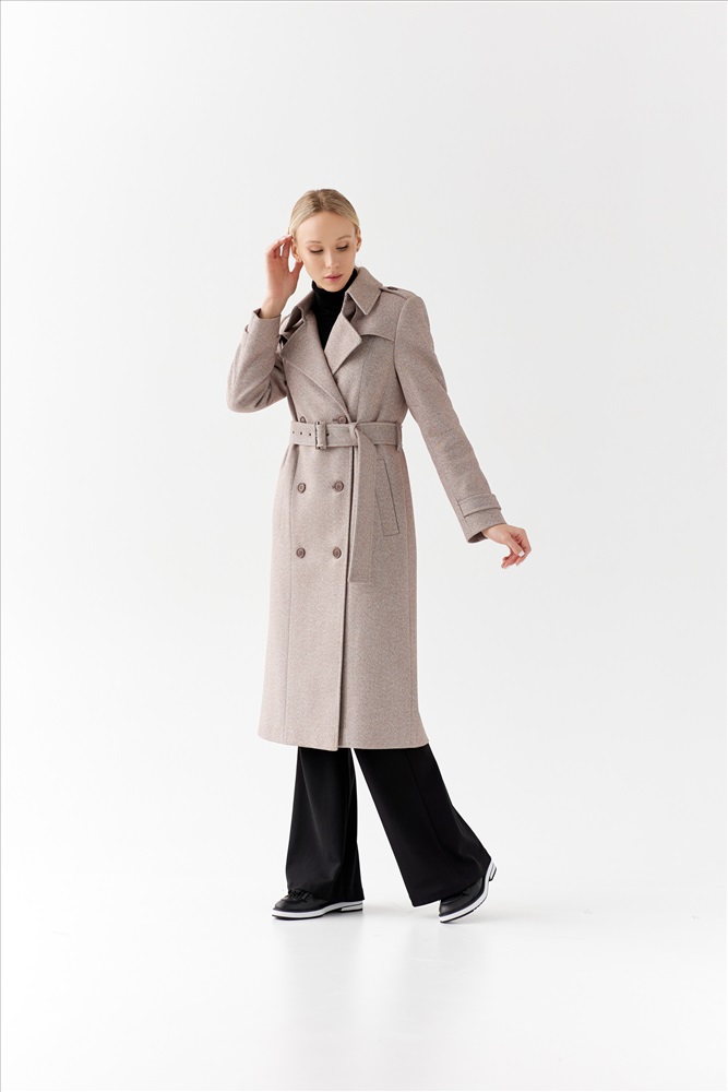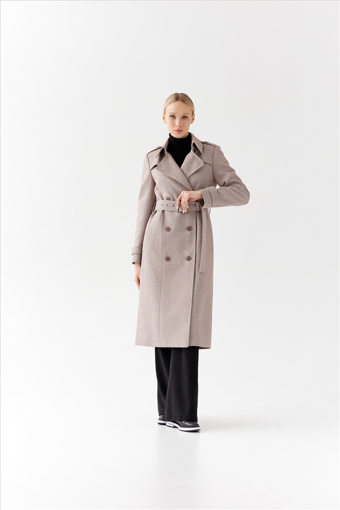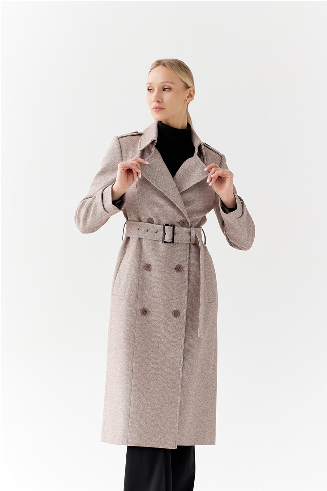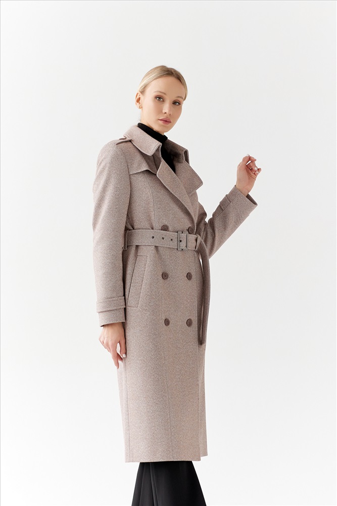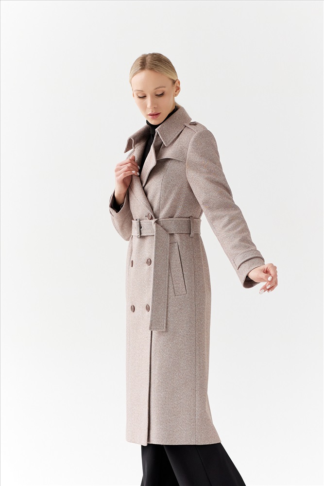 Модель: 25797; Материал: рубчик; Цвет: коричневый/ёлочка; Состав: 70% шерсть, 30% полиэстер; Параметры модели: 86-62-92, 176; Размер на модели: 42