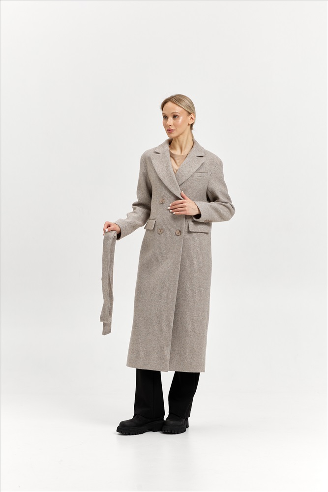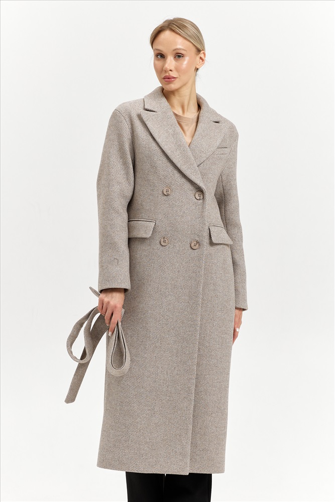 Пальто женское демисезонное 26102 (бежевый/диагональ)