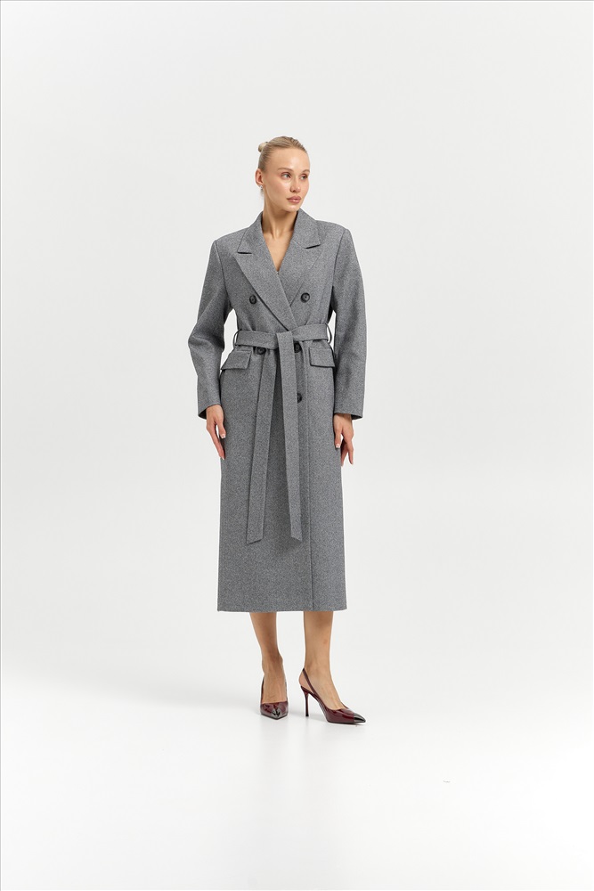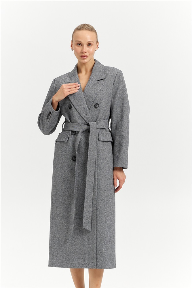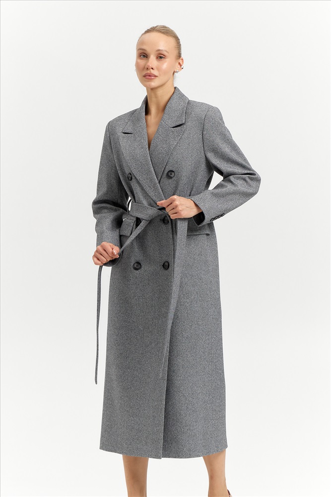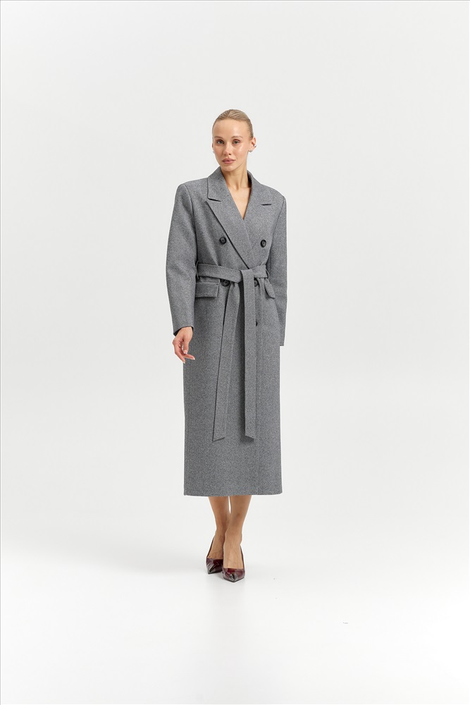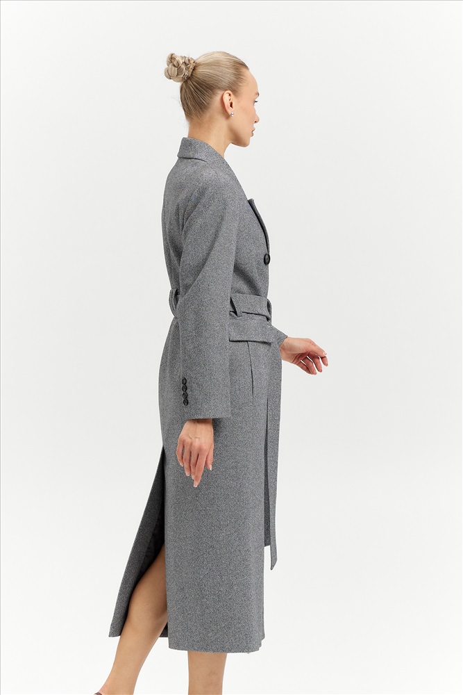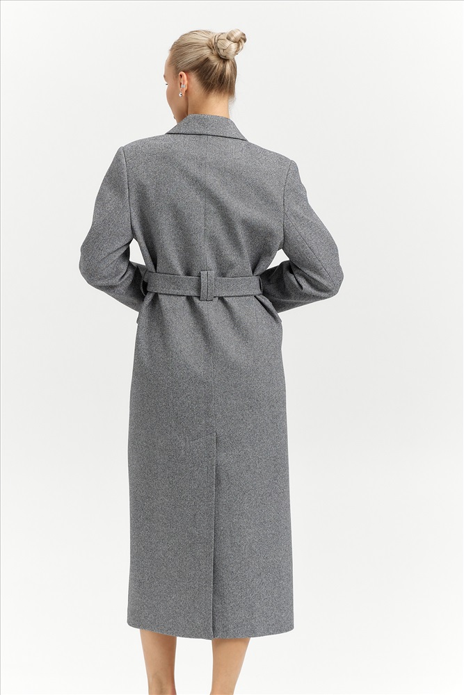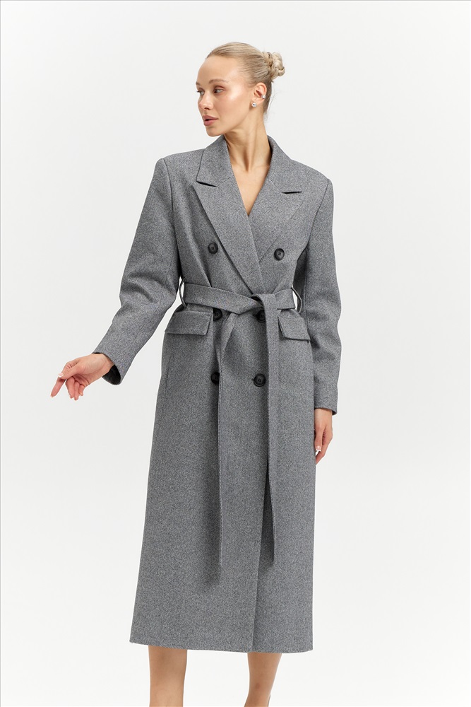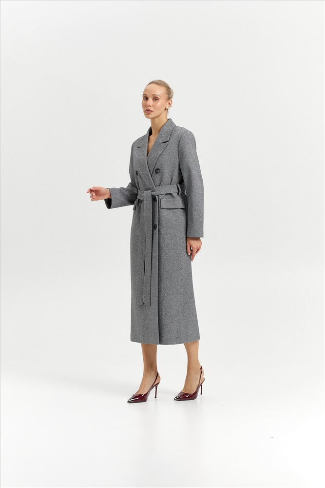 Модель: 26326; Материал: рубчик; Цвет: пепельный/ёлочка; Состав: 70% шерсть, 30% полиэстер; Параметры модели: 86-62-92, 176; Размер на модели: 42
