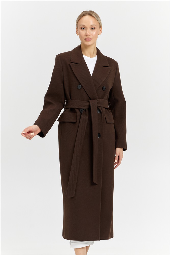 Модель: 26326; Материал: рубчик; Цвет: шоколад/рубчик; Состав: 70% шерсть, 30% полиэстер; Параметры модели: 86-62-92, 176; Размер на модели: 42 Описание: Пальто женское демисезонное Силуэт прямой, оверсайз. Воротник отлетной на стойке с лацканами(английский) Полочка - без вытачек. Карман в шве, сверху - клапан. Рукав - двухшовный втачной со шлицей. Застежка - двубортная на пуговицы в два ряда= 6шт+1 супатка. Длина изделия – 128 см.