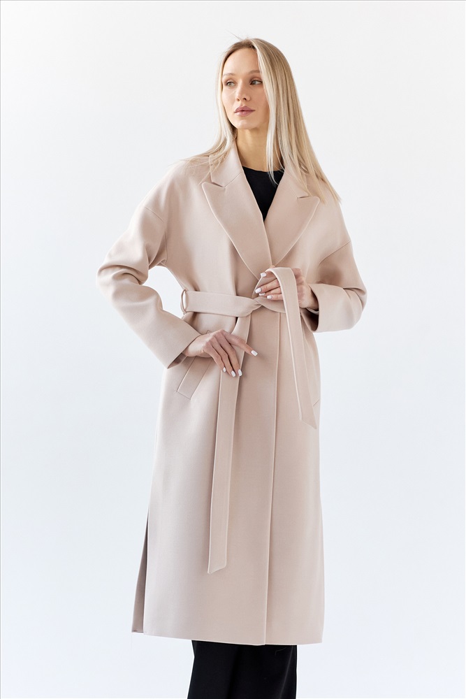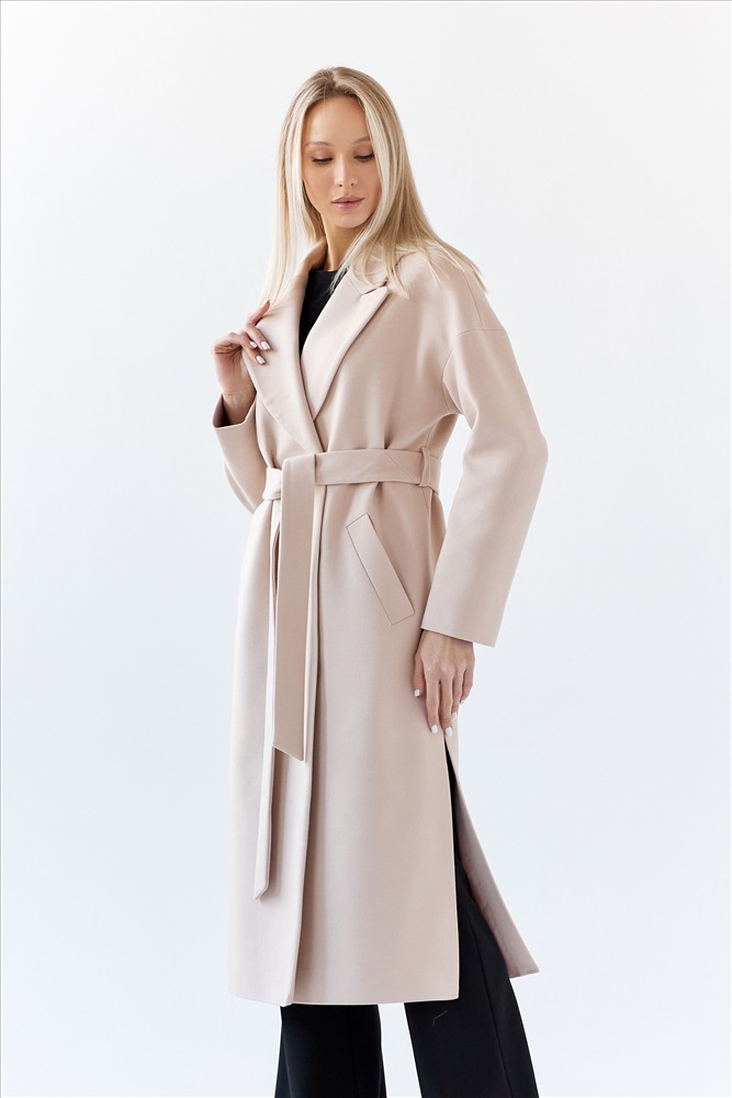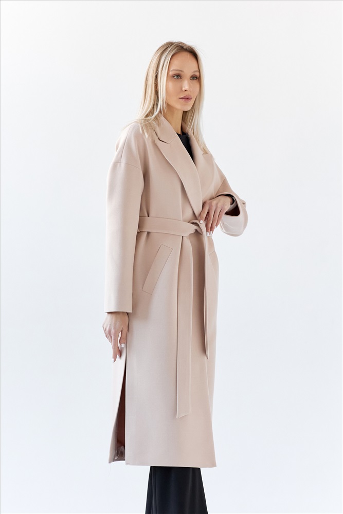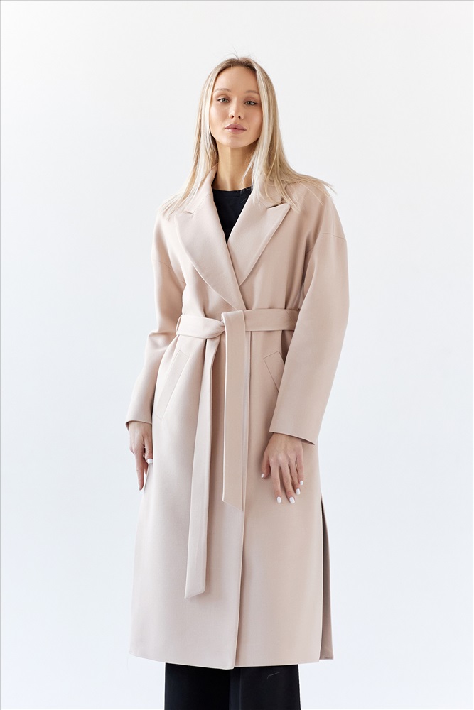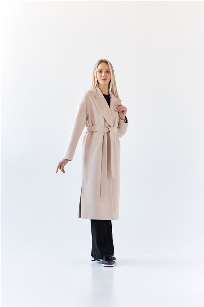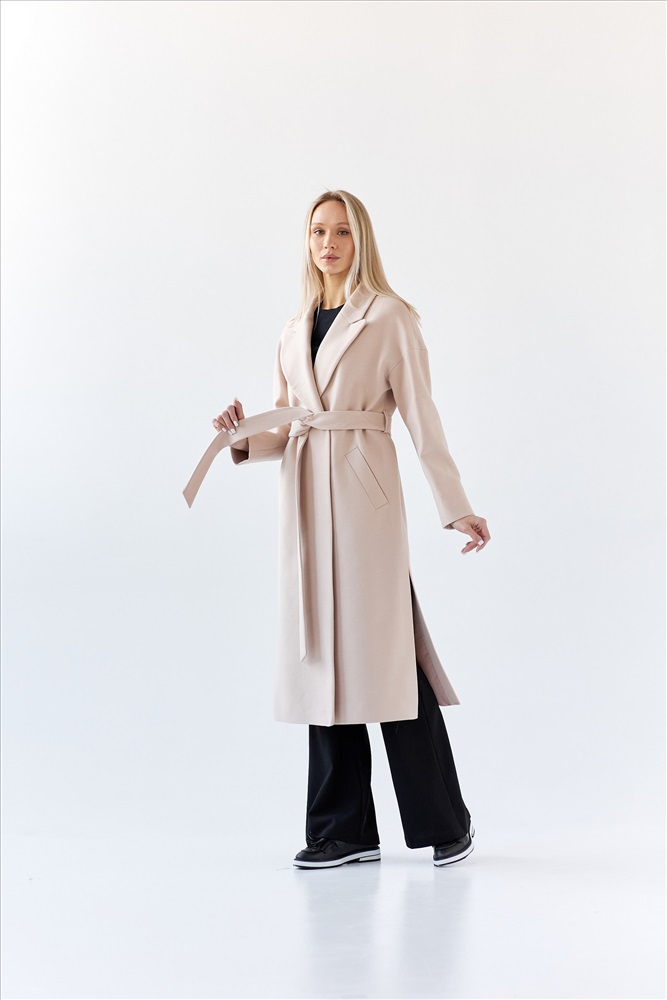 Модель: 26820; Материал: кашемир; Цвет: латте; Состав: 70% шерсть, 30% полиэстер; Параметры модели: 86-62-92, 176; Размер на модели: 42