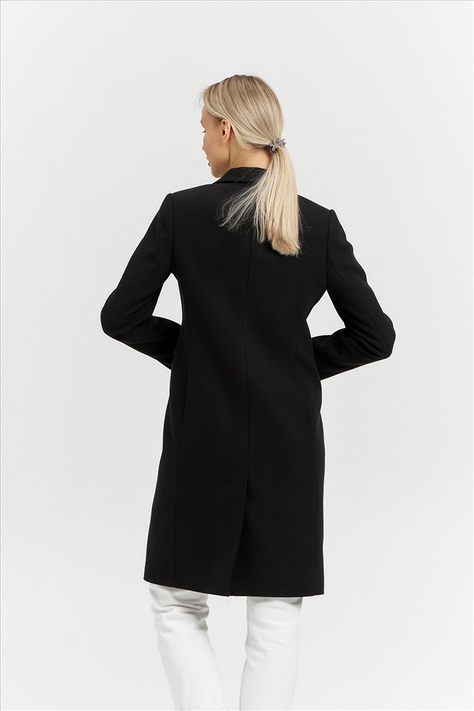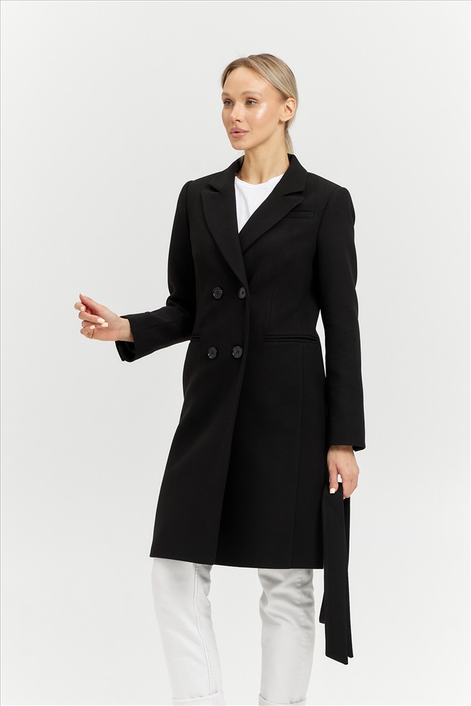 Модель: 27420; Материал: кашемир; Цвет: черный; Состав: 70% шерсть, 30% полиэстер; Параметры модели: 86-62-92, 176; Размер на модели: 42