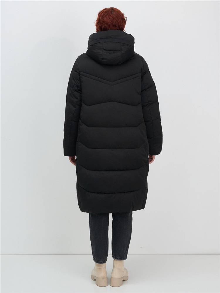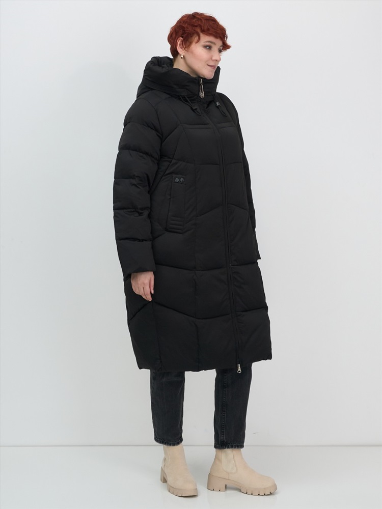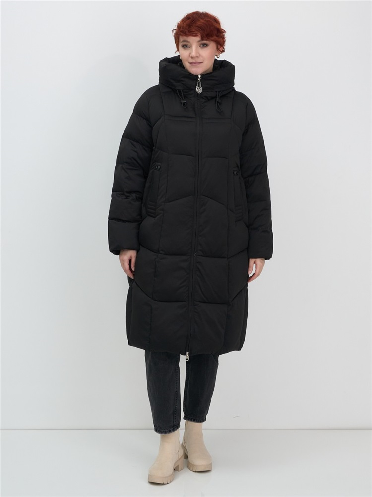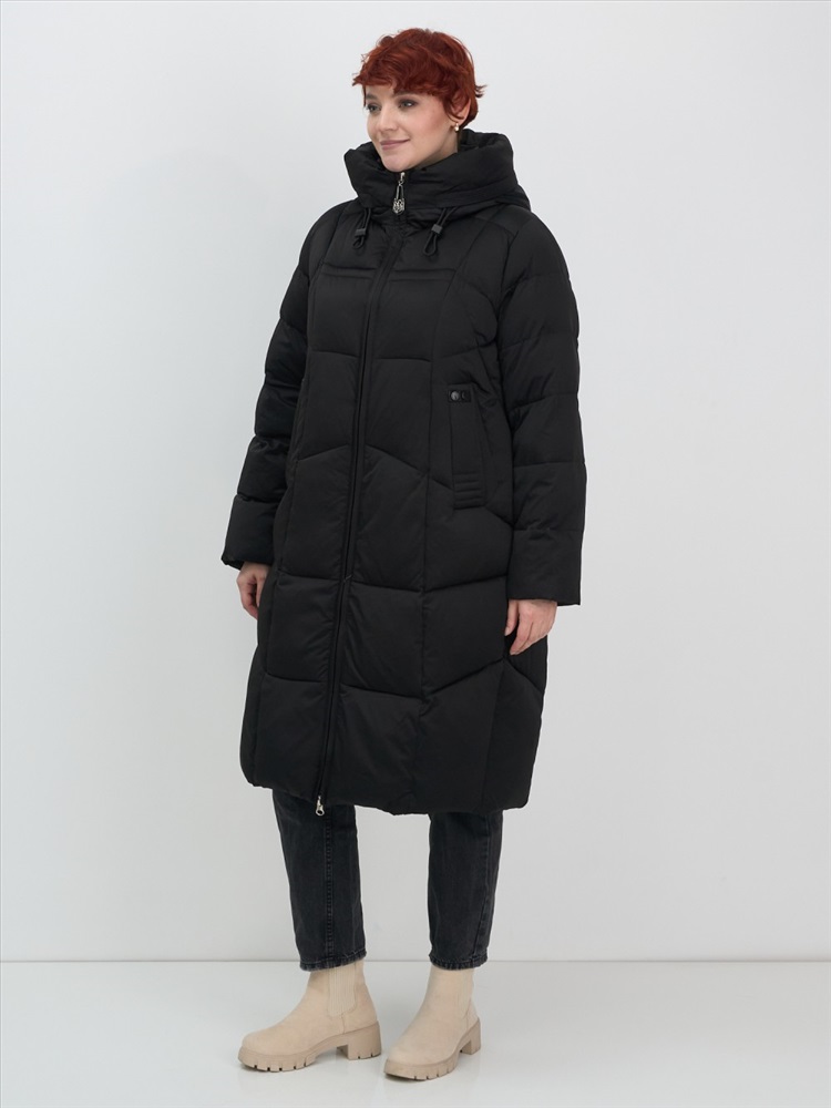 Удлиненный крой ниже колена и свободный фасон делают это женское утепленное пальто универсальным для любого стиля — от офисного до повседневного. Стойка воротника и капюшон с фиксатором добавляют элегантности и защиты от холода. Внутренние карманы и потайные застежки обеспечивают практичность и удобство в использовании.