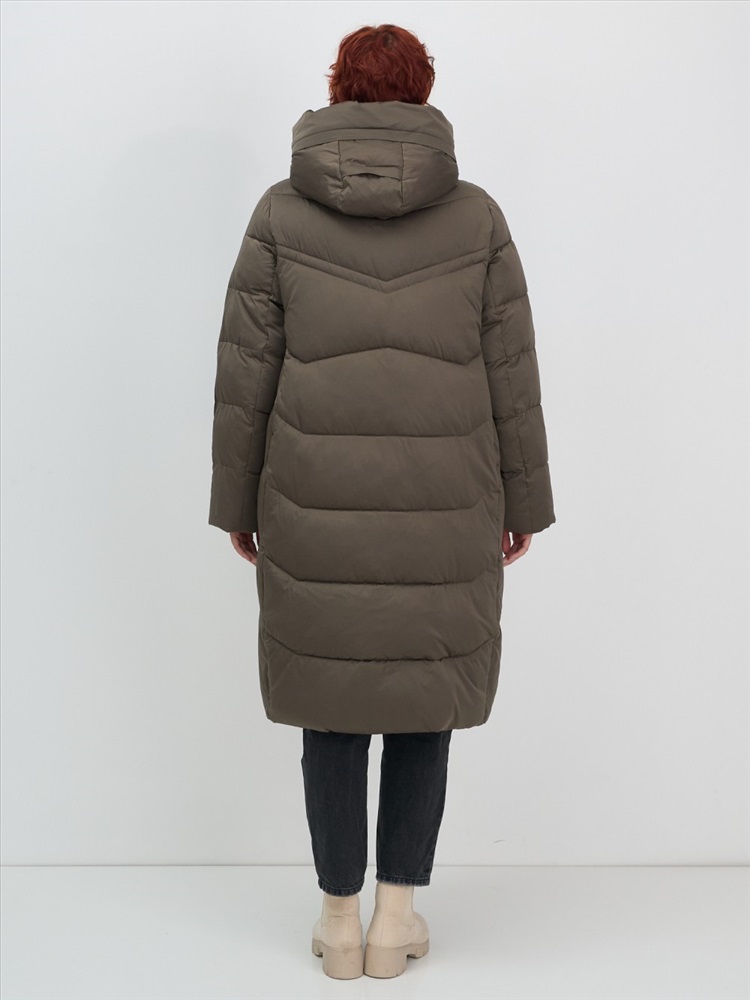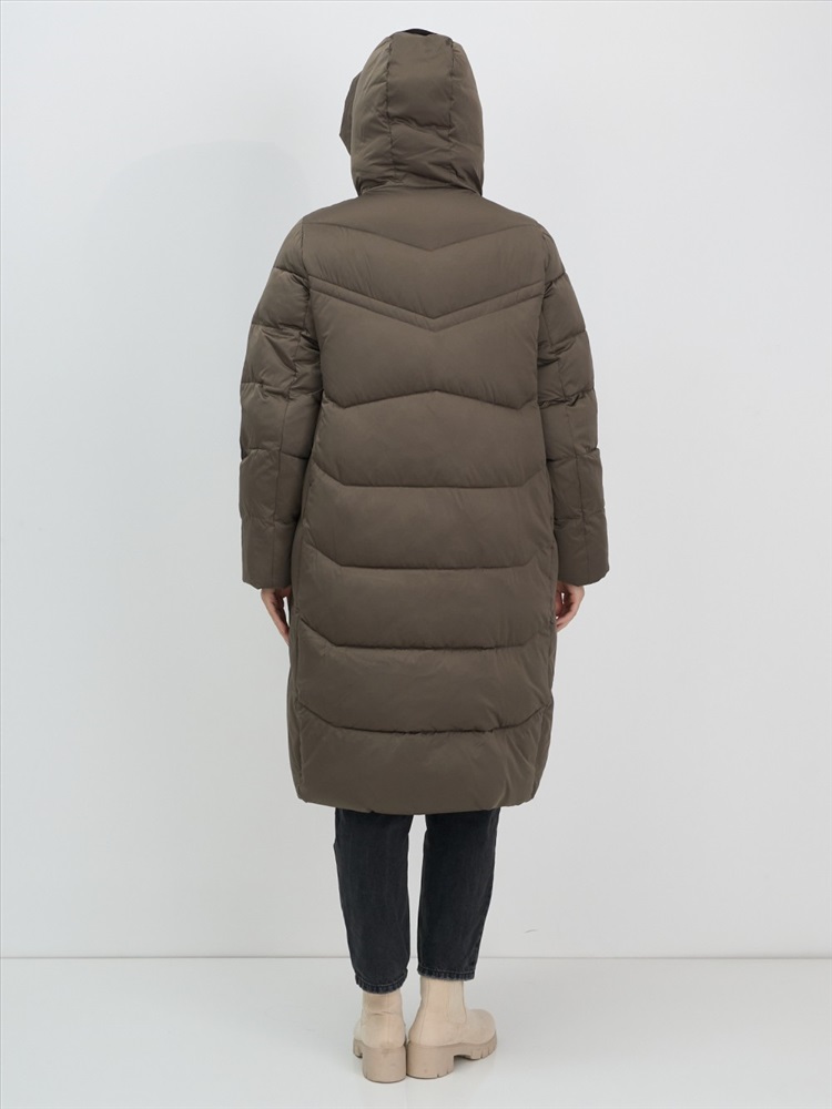 Удлиненный крой ниже колена и свободный фасон делают это женское утепленное пальто универсальным для любого стиля — от офисного до повседневного. Стойка воротника и капюшон с фиксатором добавляют элегантности и защиты от холода. Внутренние карманы и потайные застежки обеспечивают практичность и удобство в использовании.