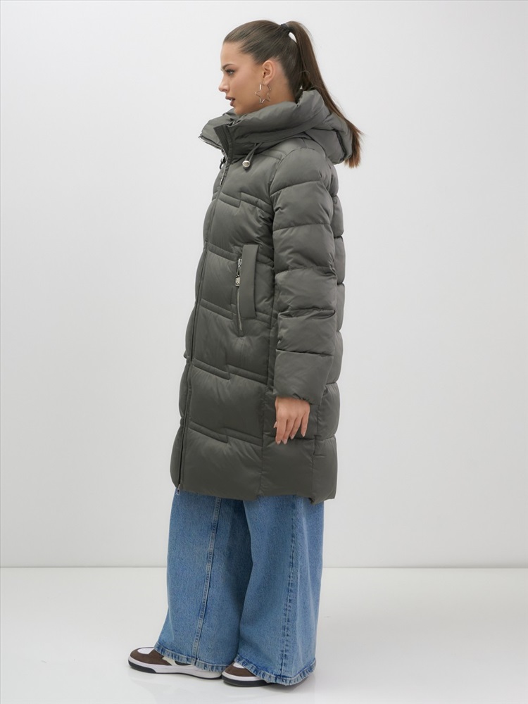 Производитель: Visdeer; Артикул: 7779TZ; Бренд: Visdeer; Пол: Женский; Сезон: Зима; Страна производителя: Китай; Тип: Утепленное; Цвет: Темно-зеленый; Рост: от 165 до 195; Диапазон температур: от 0° до - 25°; Водонепроницаемость: 7 000 мм; Комплектация: Пальто-куртка/Капюшон; Состав: 100% Полиэстер; Материал: Мембранные материалы, Полиэстер, Плащевка, Болонь, Экологичные материалы; Материал подкладки: Полиэстер; Материал подкладки капюшона: Полиэстер; Материал подкладки кармана: Полиэстер; Материал наполнителя: Синтепон; Фактура материала: Шероховатая, стеганная; Утеплитель гр: от 400 до 580; Плотность утеплителя (г/кв.м): 220; Покрой: Прямой/Свободный; Длина подола: Удлиненная; Длина одежды: до колена; Тип рукава: Длинный (манжеты); Внутренние карманы: Есть; Тип кармана: Прорезной (на кнопке); Воротник: капюшон; Фиксаторы: На капюшоне; Опции капюшона: Не съемный; Декоративные элементы: Капюшон, Карманы, Манжеты, Молния; Внутренние швы: Проклеены/Прошиты; Вид застежки: Двойная молния; Особенности модели: быстросохнущая, ветрозащита, водоотталкивающий материал, гипоаллергенный материал, дышащий материал, утягивающая модель; Вид одежды: Свободный, утепленная модель; Стиль: Элегантный, Офисный/школьный, Повседневный; Рисунок: Однотонный; Коллекция: Осень-зима 2025; Тип упаковки: Пакет; Цвета: коричневый, черный, светло-коричневый, темно-серый; Габариты (ДхШхВ): 55 x 50 x 15 см; Вес: 1.65 кг