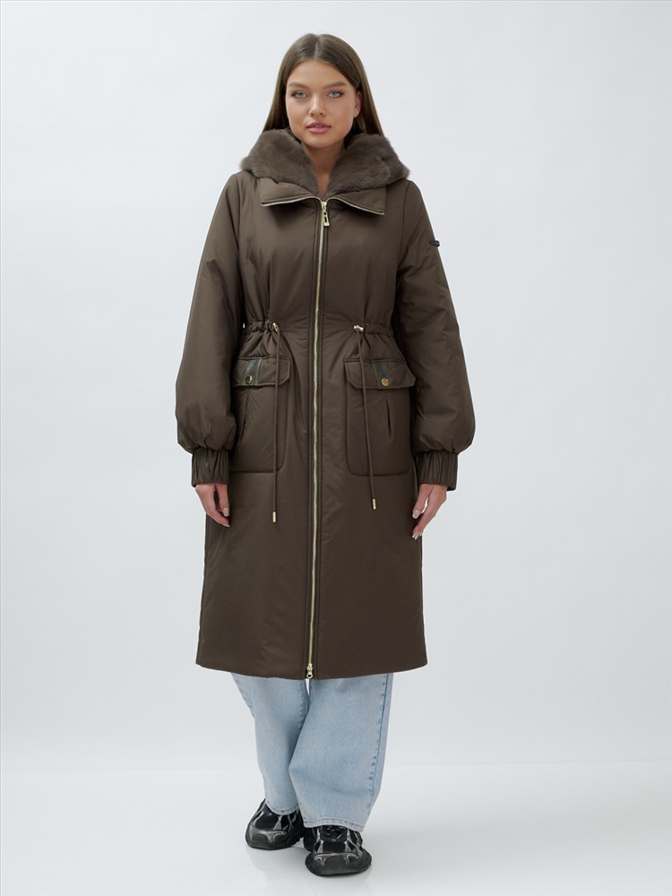 Производитель: TORINNI; Артикул: 8628K; Бренд: TORINNI; Пол: Женский; Сезон: Зима; Страна производителя: Китай; Тип: Утепленное; Цвет: Коричневый; Рост: от 160 до 195; Диапазон температур: от 0° до - 25°; Водонепроницаемость: 10 000 мм; Комплектация: Пальто-куртка/Капюшон/Мех норка (натуральная); Состав: 100% Полиэстер; Материал: Мембранные материалы, Натуральные материалы, Полиэстер, Плащевка, Тефлон, Болонь, Экологичные материалы; Материал подкладки: 100% полиэстер; Материал подкладки капюшона: 100% полиэстер; Материал наполнителя: Тинсулейт; Фактура материала: гладкая; Утеплитель гр: от 460 до 660; Плотность утеплителя (г/кв.м): 240; Покрой: Полуприталенная/Свободный; Длина подола: Удлиненная; Длина одежды: Ниже колена; Тип рукава: Длинный; Внутренние карманы: Есть (скрытая); Тип кармана: Накладной (кнопка) клапан из натуральной змеиной кожи; Воротник: Стойка; Фиксаторы: По середине/По низу; Опции капюшона: Съемный; Декоративные элементы: Карманы, Кнопки, Манжеты, Съемная опушка; Внутренние швы: Проклеены/Прошиты; Вид застежки: Двойная молния; Особенности модели: быстросохнущая, ветрозащита, гипоаллергенный материал, дышащий материал, потайной карман, утягивающая модель; Вид одежды: Свободная, утепленная модель; Стиль: Элегантный, Вечерний, Повседневный; Рисунок: Однотонный; Коллекция: Осень-зима 2024; Тип упаковки: Пакет; Цвета: черный, темно-коричневый, коричневый; Габариты (ДхШхВ): 55 x 50 x 14 см; Вес: 1.5 кг