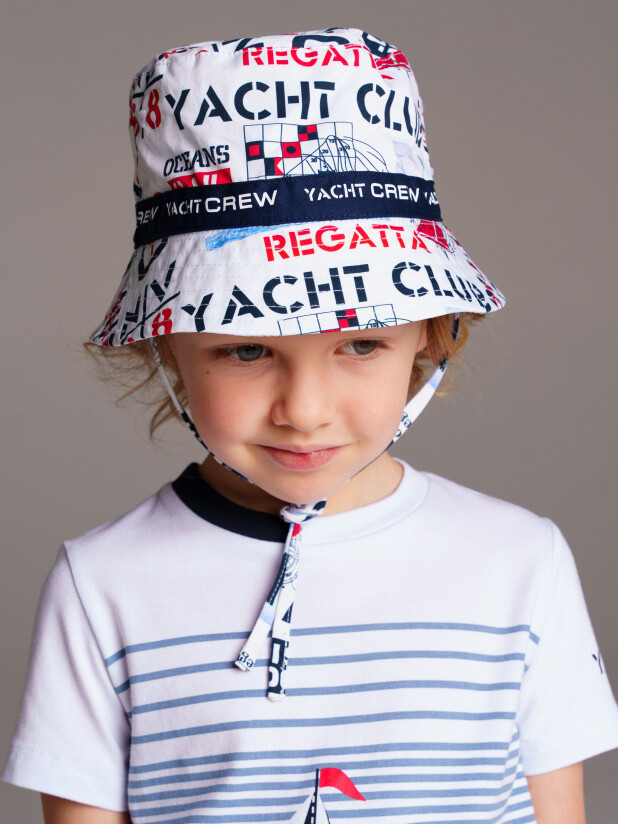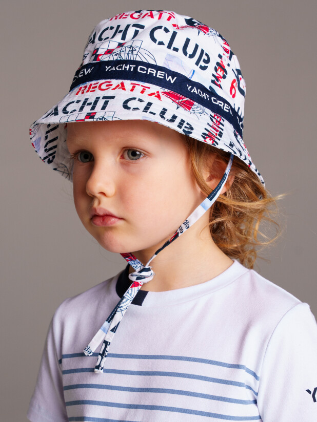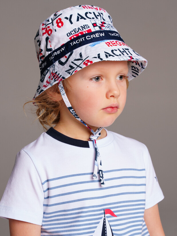 Панама из 100% хлопка. Классическая форма. Завязки комфортно фиксируют панаму на голове.