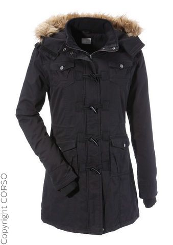 Winterjacke mit abnehmbarer Kapuze und Fellimtat, Mit Knebelknöpfen und praktischem Reißverschluss, In figurumspielender Passform, Damenparka - winterwarm gefüttert und wattiert, Große Taschen und Teilungsnähte, Obermaterial: 100% Baumwolle. Futter: 100% Polyester. Wattierung: 100% Polyester, N-Gr