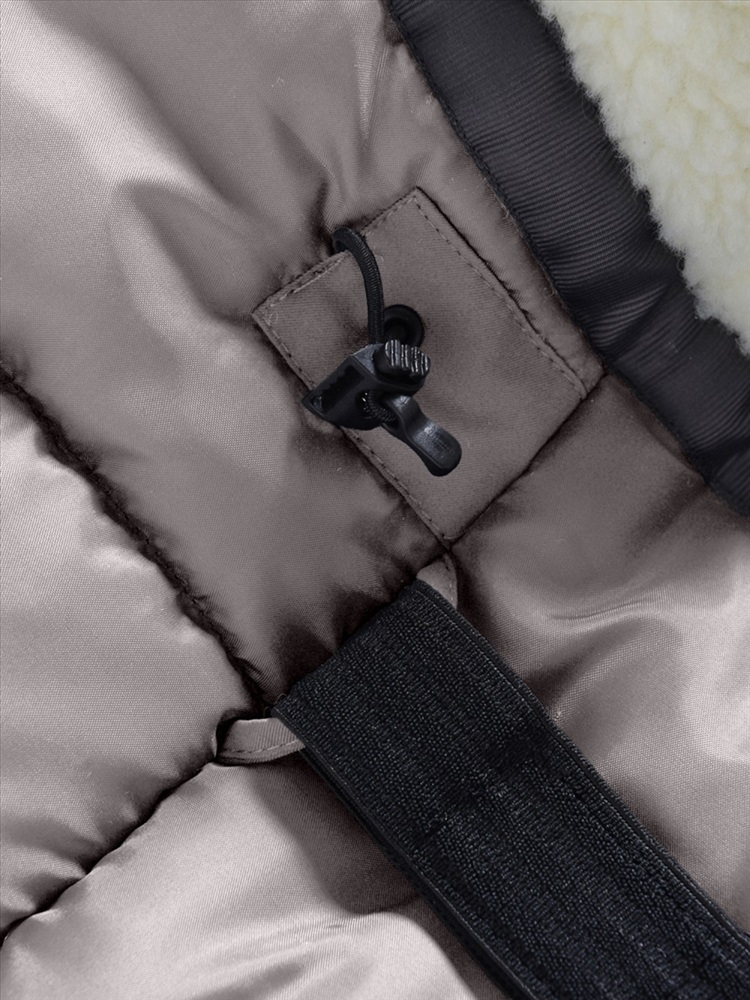Фиксаторы по низу, на капюшоне и по центру (в области талии) позволяют точно настроить силуэт — сделать его более приталенным или оставить прямым.
