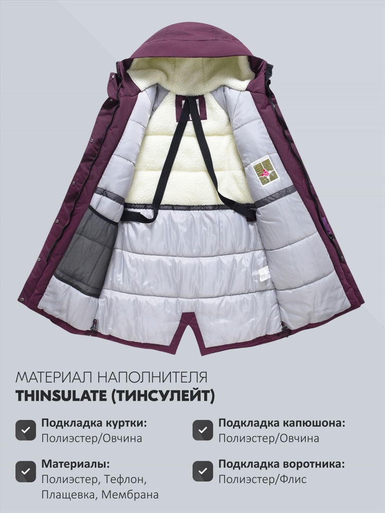 Производитель: VALIANLY; Артикул: 9538-1Bo; Бренд: VALIANLY; Пол: Женский; Сезон: Зима; Страна производителя: Китай; Тип: Парка; Цвет: Бордовый; Диапазон температур: °С от + 5° до - 25°; Водонепроницаемость: До 10 000 мм; Состав: 100% Полиэстер; Материал: Мембранные материалы, Полиэстер, Тефлон, Плащевка; Материал подкладки куртки: Полиэстер/Овчина; Материал подкладки капюшона: Полиэстер/Овчина; Материал подкладки воротника: Полиэстер/Флис; Материал наполнителя: Тинсулейт (Thinsulate); Фактура материала: плотная; Паропроницаемость: До 5 000 г/м²/24 ч; Плотность утеплителя (г/кв.м): 295; Покрой: свободный; Длина одежды: до колена; Тип рукава: Длинная на манжете; Внутренние карманы: Есть; Тип кармана: Прорезной на молнии (с начесом); Форма воротника: стояче-отложной; Фиксаторы: На рукавах, по середине, на капюшоне, по низу; Опции капюшона: Не съемный; Декоративные элементы: Манжеты, Пояс/ремень, Кнопки, Капюшон; Внутренние швы: Проклеены; Вид застежки: Двойная молния/Кнопки/Клапан; Особенности модели: водоотталкивающий материал, гипоаллергенный материал, с разрезом, с начесом, светоотражающие детали, утягивающая модель; Вид одежды: Свободная, Утепленная модель; Стиль: Повседневный, Школьный, Спортивный; Рисунок: Надписи, Логотип, Однотонный, Светится в темноте; Коллекция: Осень-зима 2026; Тип упаковки: Пакет; Цвета: бордовый, черный, сиреневый, васильковый, бирюзовый; Габариты (ДхШхВ): 52 x 45 x 11 см; Вес: 1.61 кг