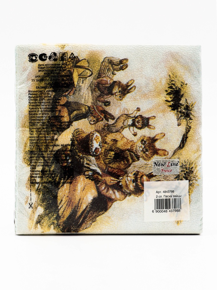 Габариты: 16,5 x 16,5 x 3 Доставка: Платная Страна: Россия В боксе: 20 набор В наборе: 20 набор Состав: Бумага Материалы: бумага Фасовка: по 1 набор Индивидуальная упаковка: Плёнка Сертификат: СТР Цвет: Белый Размер, см: 33 х 33 В наборе, шт.: 20 Тематика: Праздник Символ года: Нет Тематика праздника: Пасха Материал: Бумага Тип бумаги: Двухслойная Вид: С рисунком Фиксированная цена: Да Пасхальные сервировочные бумажные салфетки New Line Fresco с рисунком «Пасхальные зайцы» - это отличное украшение для вашего праздничного стола. Идеально подойдут как для сервировки, так и в качестве декора и украшения в домашних условиях или на больших мероприятиях. Праздничные салфетки с пасхальным рисунком будут хорошим подарком для родных и близких. Данные салфетки можно использовать так же для декупажа и коллажей. Салфетка состоит из 100% целлюлозы. Размер салфетки в развёрнутом виде 33х33 см, в сложенном виде 16,5х16,5 см. С наступающим праздником Светлой Пасхи! Комментарии к товару