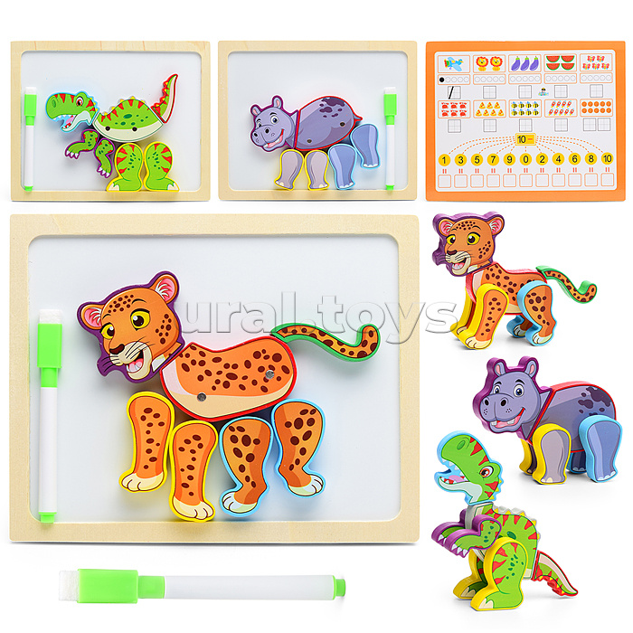 Наличие: >10 В наборе: - двухстороннее игровое поле (22,5х18 см.) - детали животного. - маркер. Материал: дерево. Соответствует требованиям безопасности продукции. Для детей от 3 лет. Комментарии к товару