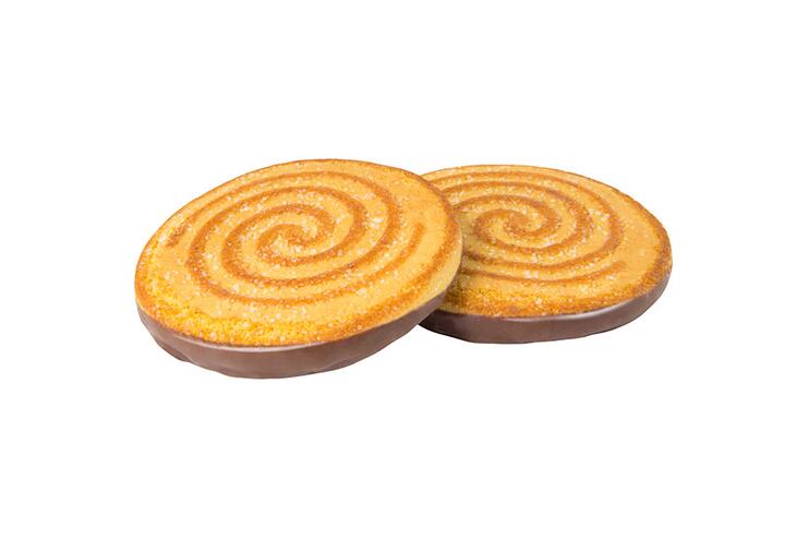 Рассыпчатое печенье со вкусом апельсина, с глазирированным донышком.