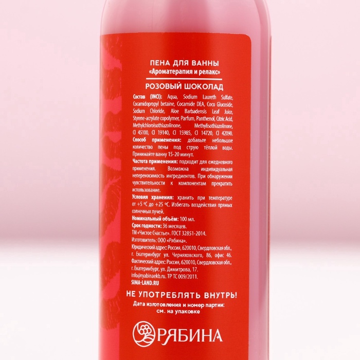 Производитель: Чистое счастье; Габариты: 3,5 x 3,5 x 12,5; Страна: Россия; В боксе: 104 шт; Состав: См. на упаковке; Материалы: см. на упаковке; Фасовка: по 1 шт; Индивидуальная упаковка: Без упаковки; Сертификат: ЕАС; Набор: Нет; Для кого: Для женщины; Объём, мл: 100; Тематика праздника: 14 Февраля; Адресат: Без адресата; Аромат: Шоколад; Темпер. ограничение НЕ НИЖЕ ℃: +5; Темпер. ограничение НЕ ВЫШЕ ℃: +25; Возраст: Для взрослых; Назначение: Очищение, детокс видео Состав: Aqua, Sodium Laureth Sulfate, Cocamidopropyl betaine, Cocamide DEA, Coco Glucoside, Sodium Chloride, Aloe Barbadensis Leaf Juice, Styrene-acrylate copolymer, Parfum, Panthenol, Citric Acid, Methylchloroisothiazolinone, Methylisothiazolinone, CI 45100, CI 19140, CI 15985, CI 14720, CI 42090